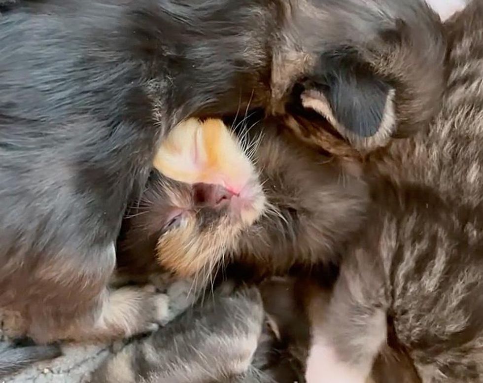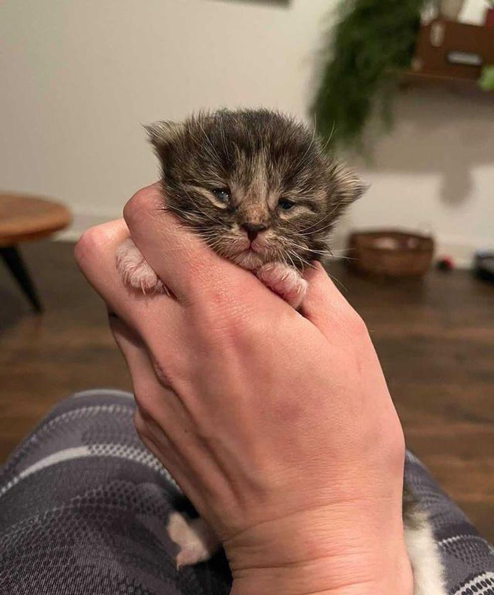 The kittens were just 2-3 weeks old. At their age, they would do better with a nursing cat mom. Kiki, a foster volunteer of the rescue, learned about their plight and immediately stepped up to help.