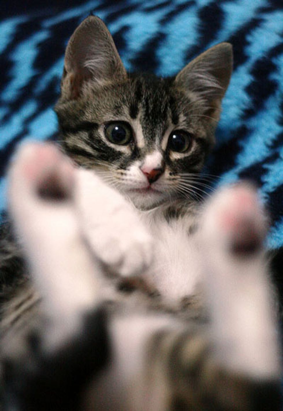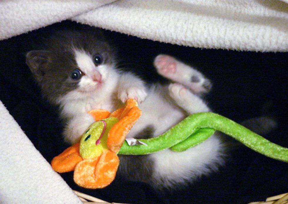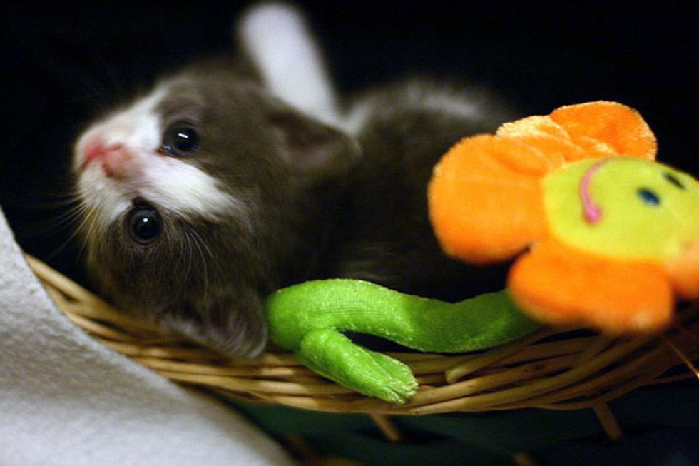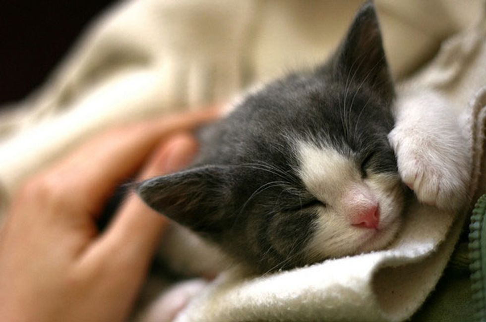 A fuzzy grey and white kitten was rescued on the street when he was only a couple months old. He was introduced to a tabby kitten whom he was not fond of when they first met, but things quickly changed. Day by day they got to learn about each other and realized they could play together and snuggle when they sleep. Today, they have become best friends, always cuddling each other when they snooze. The two boys are like two peas in a pod, completely inseparable.