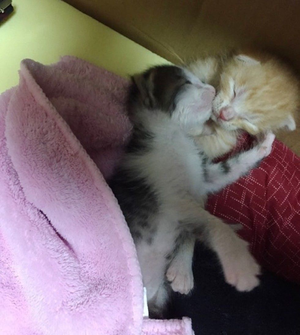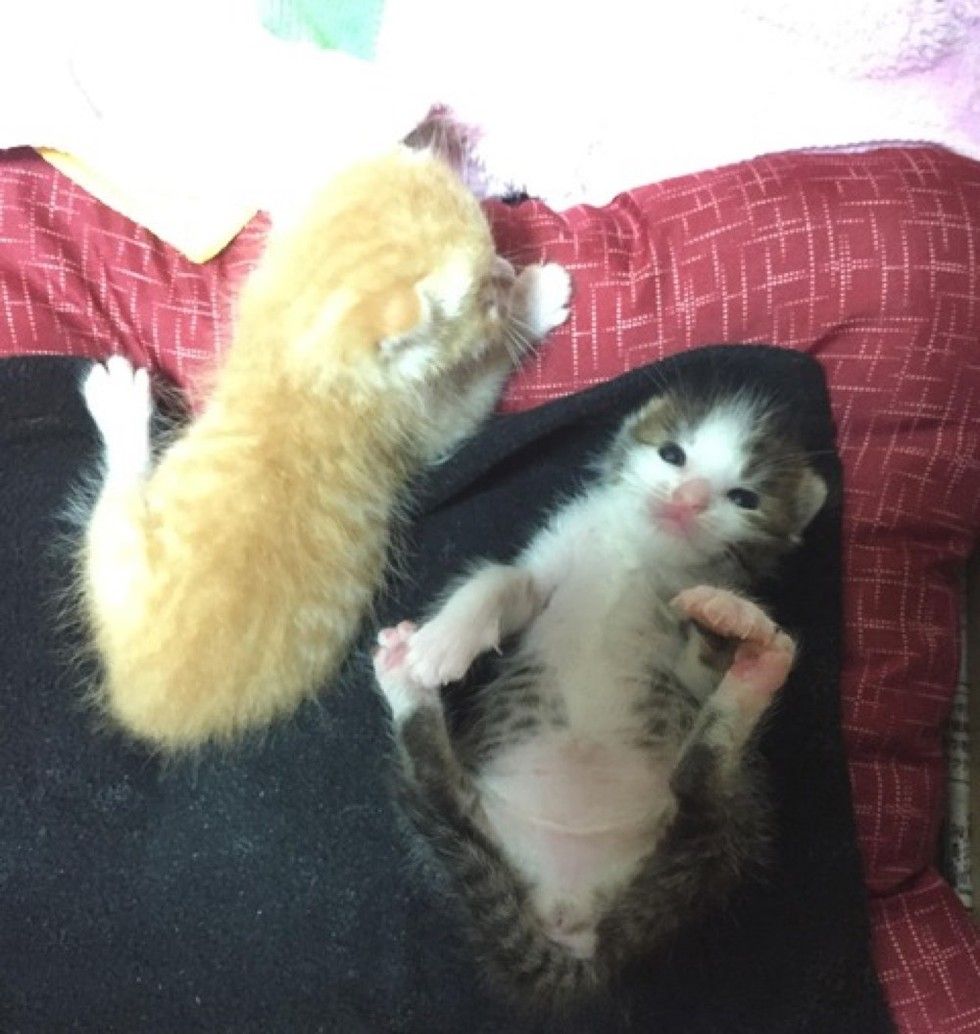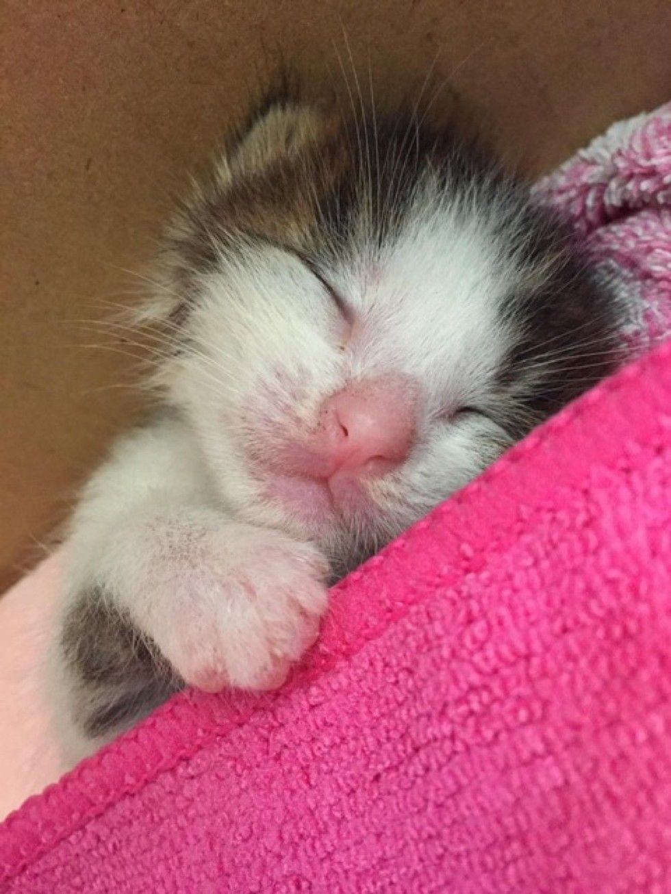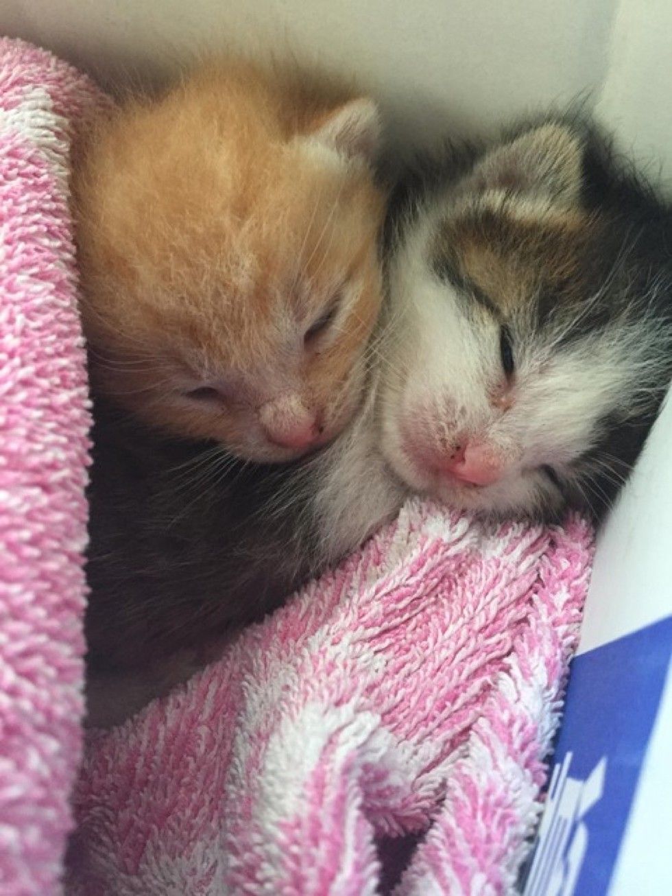 Last August, two tiny kittens were rescued just the day before a typhoon.
