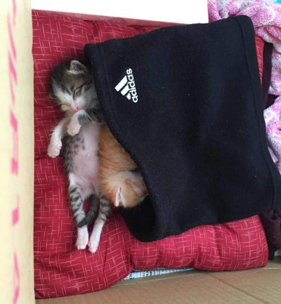 He brought them blankets, all sorts of cushy things and even a bottle filled with warm water to keep the kittens warm as they were out for too long.