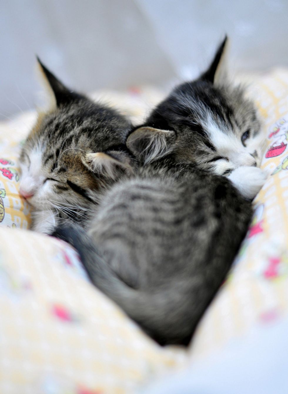 These two tiny fuzzballs were born feral. They were rescued from a neighborhood and we brought them to a good home where they learned to use a litter box, play with a cat tree, socialize with people and run around the house like they own it.