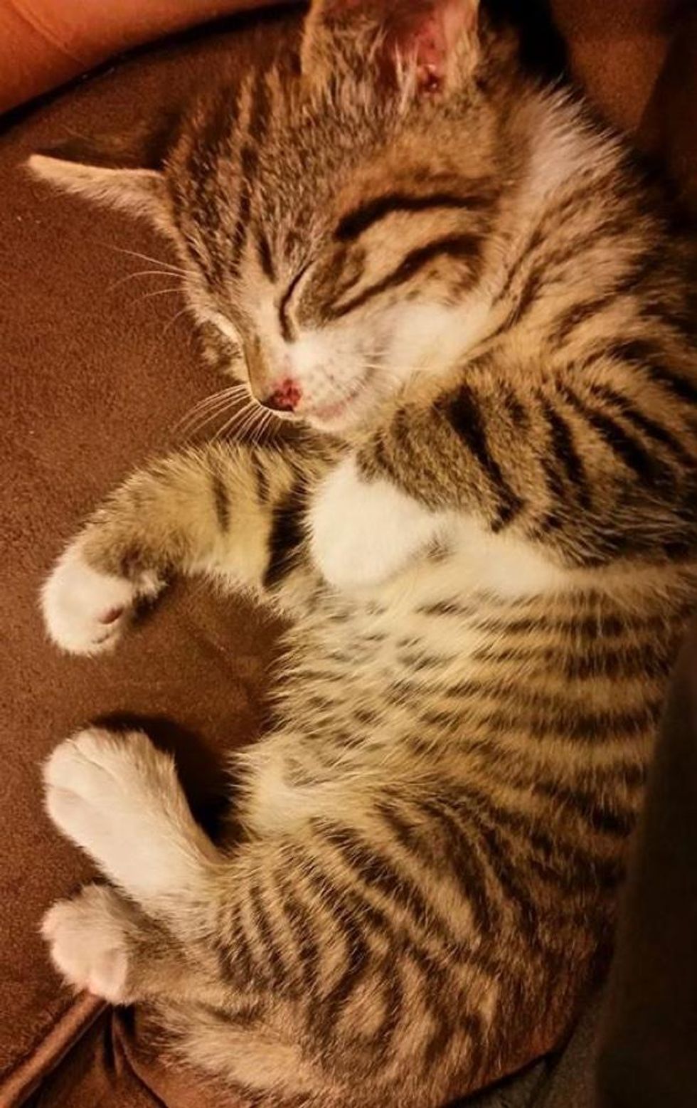 After a long day, Bridger Catfish Newman dozed off in his comfortable new bed at his forever loving home.