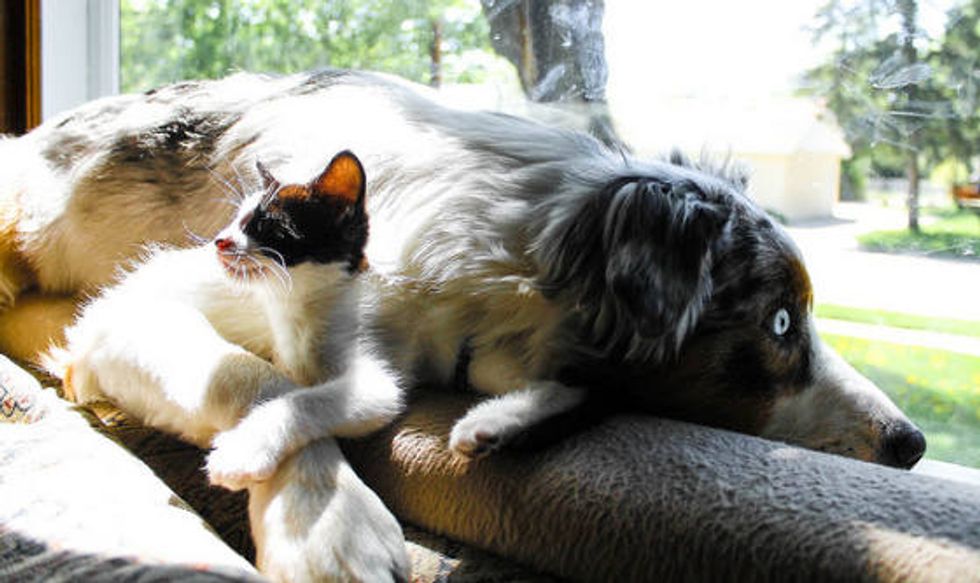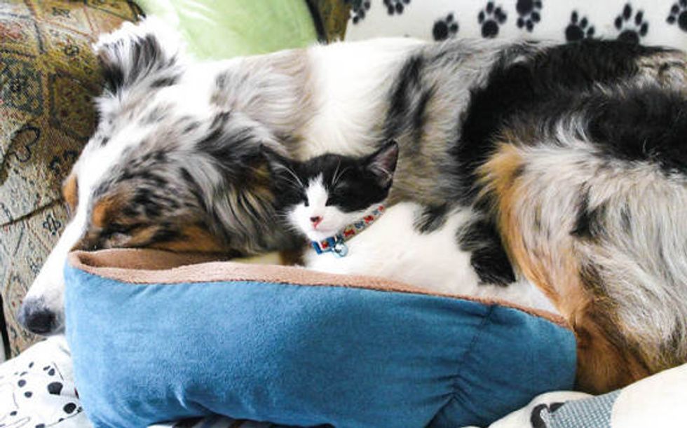 Pippin the kitten showed up at the front porch a couple of weeks ago. He met Tazz the dog. "We're pretty sure he thinks Tazz is his momma," said Hannah.