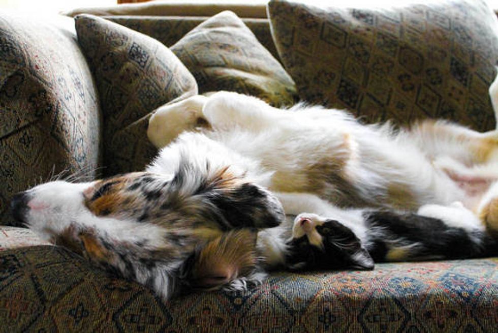 Pippin showed up at the front porch, and Tazz the dog took him into her care and the two became inseparable.