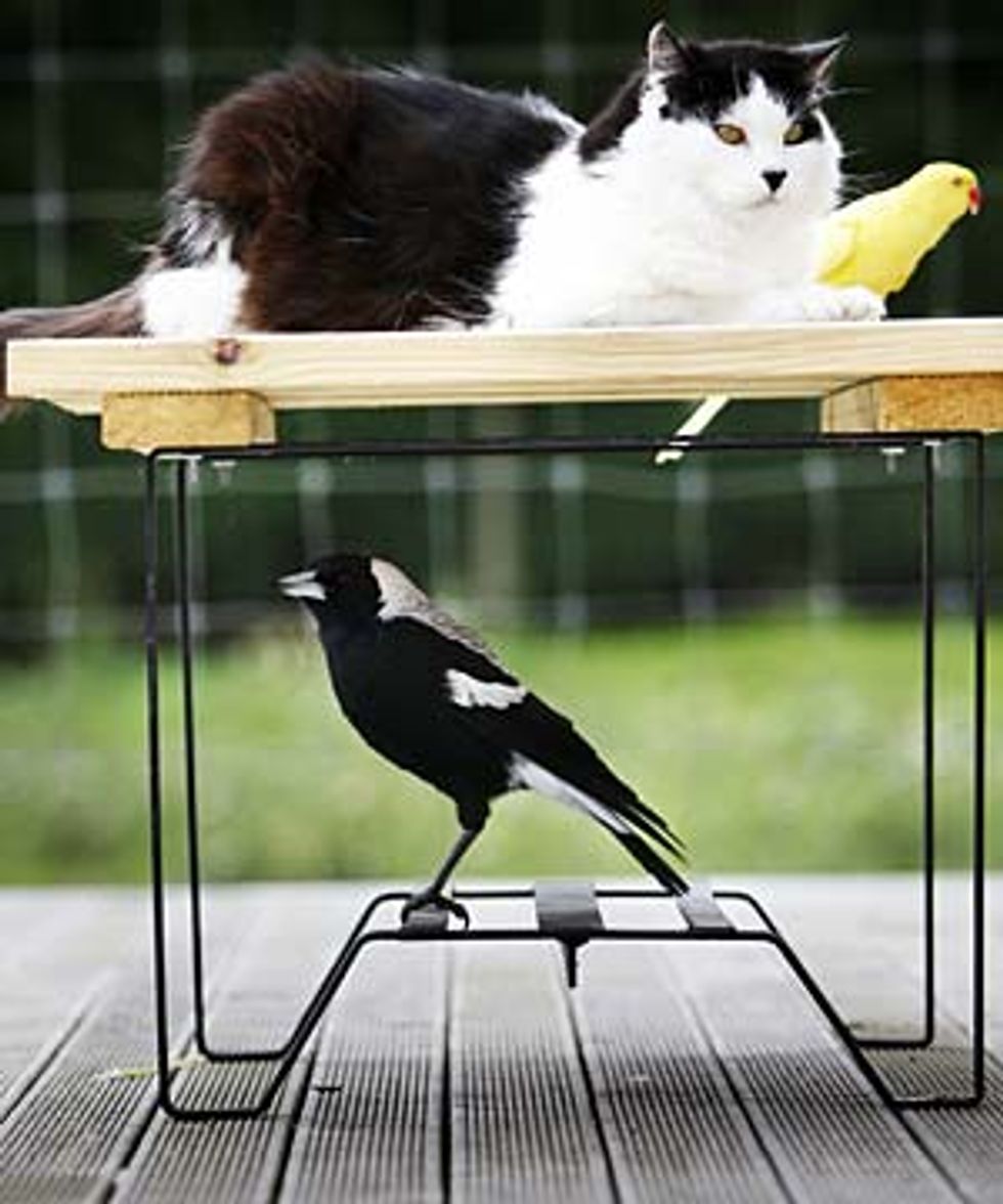 Pussy the cat befriends Maggy the magpie and Yellow Bird the yellow bird. They may seem to be three unlikely friends, but to them there is nothing unusual in their friendship. Pussy does not know that he is a cat. According to his owner, he has never tried to eat the birds and is not much of a hunter.
