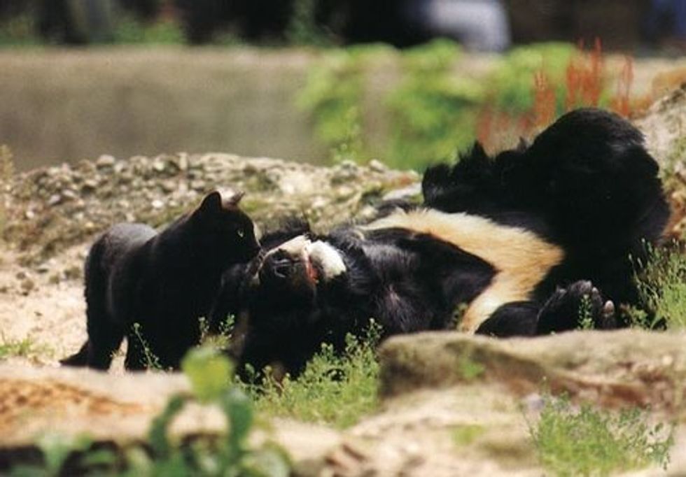 Mausi and Muschi are two unlikely friends at Germany's Berlin Zoo. The female moggy entered the male Asian black bear's enclosure for food about eight years ago. After that they started living, eating and playing together.