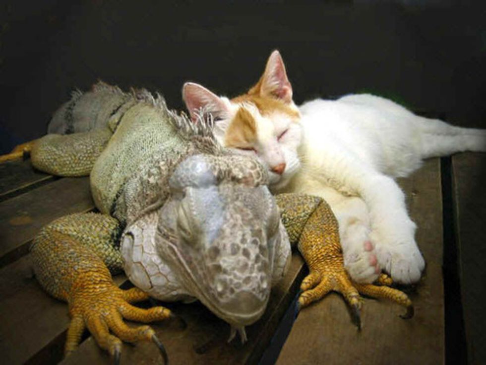 Sobe, the lizard initially "was defensive and territorial and tried to lunge at Johann several times." In the beginning his owner tried to separate them and slowly introduced them to each other and within a couple of days they became best friends.