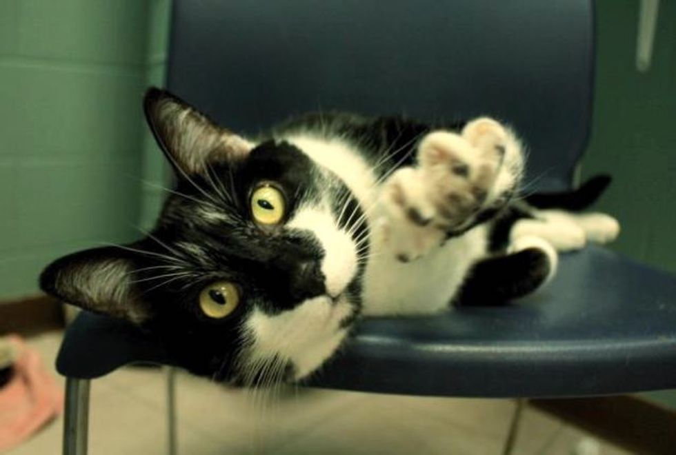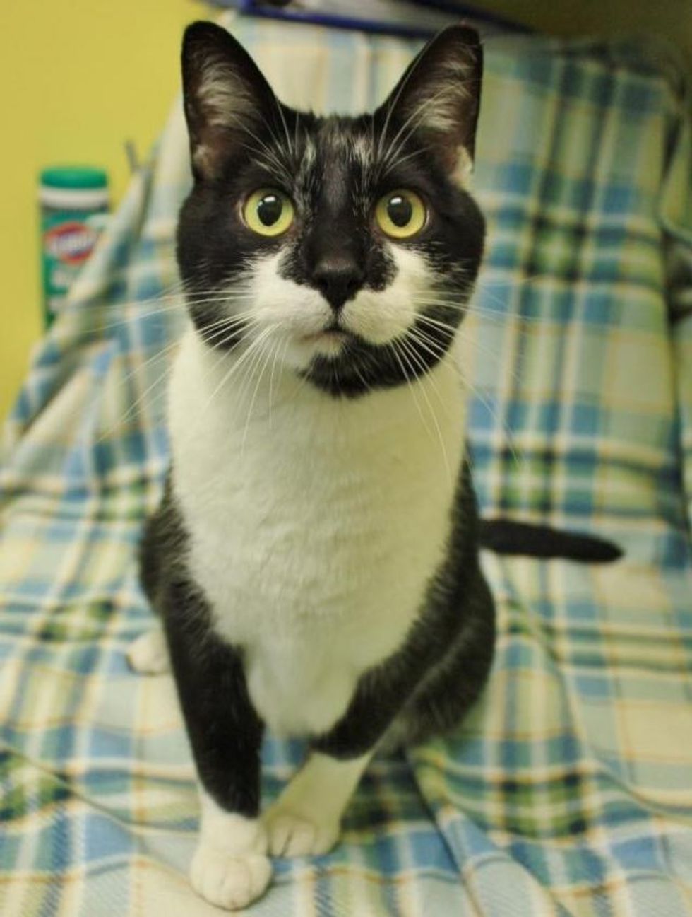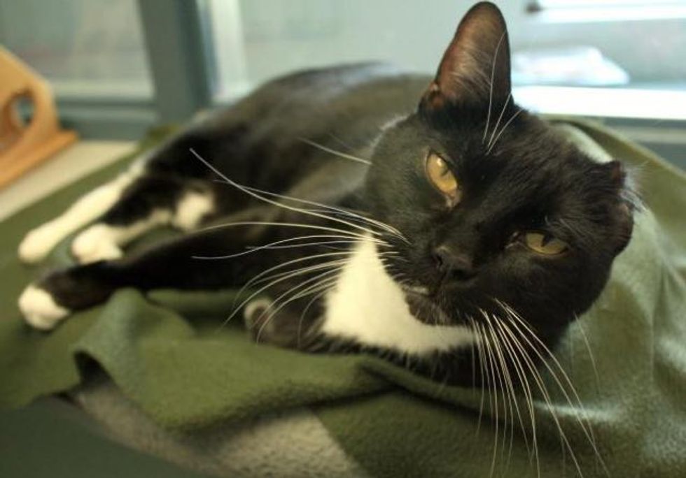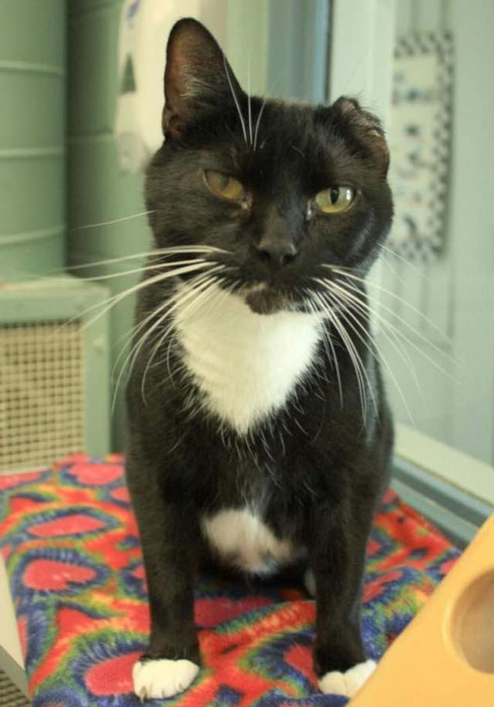 "Picasso is in good health, but Van Gogh was diagnosed with Herpes Viral Conjunctivitis, which is why his eye looks goofy. He'll need eye drops indefinitely. We are unsure about why he's missing an ear -- his former owners adopted him seven years ago that way."