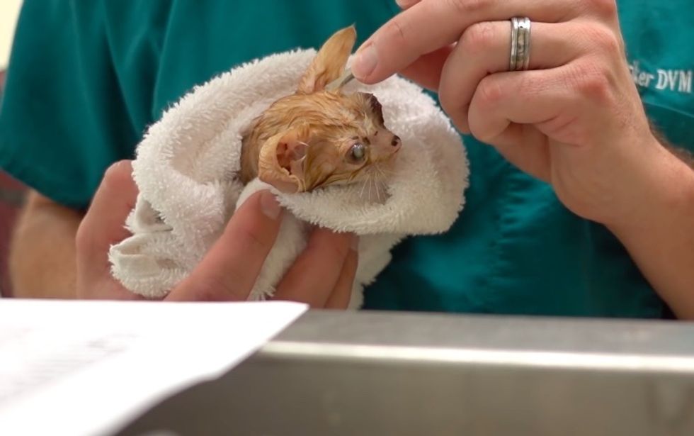 The tiny ginger boy was infested with fleas and was extremely weak. "We don't know his whole history. Someone just found him like this, probably abandoned by his mom," Dr. Matt said.