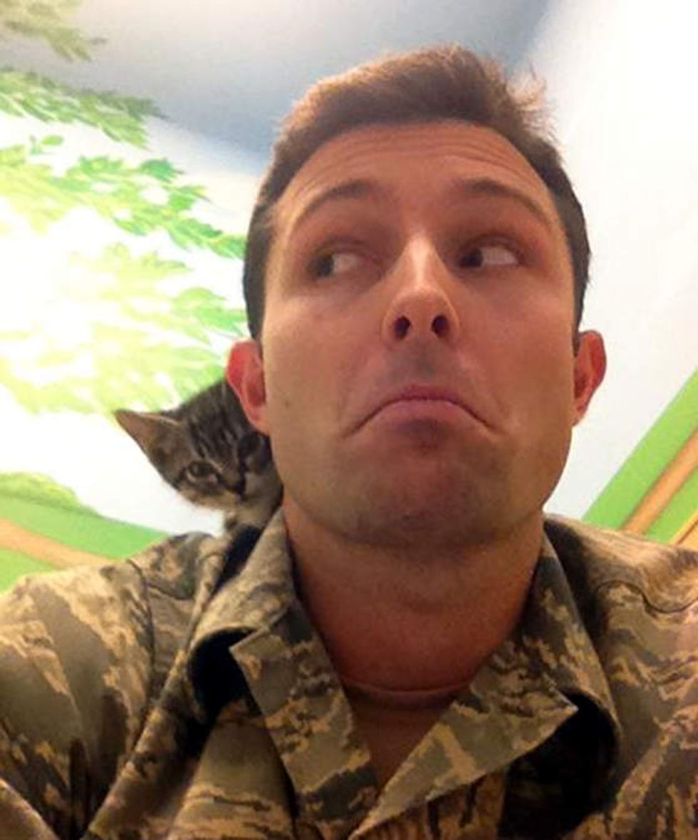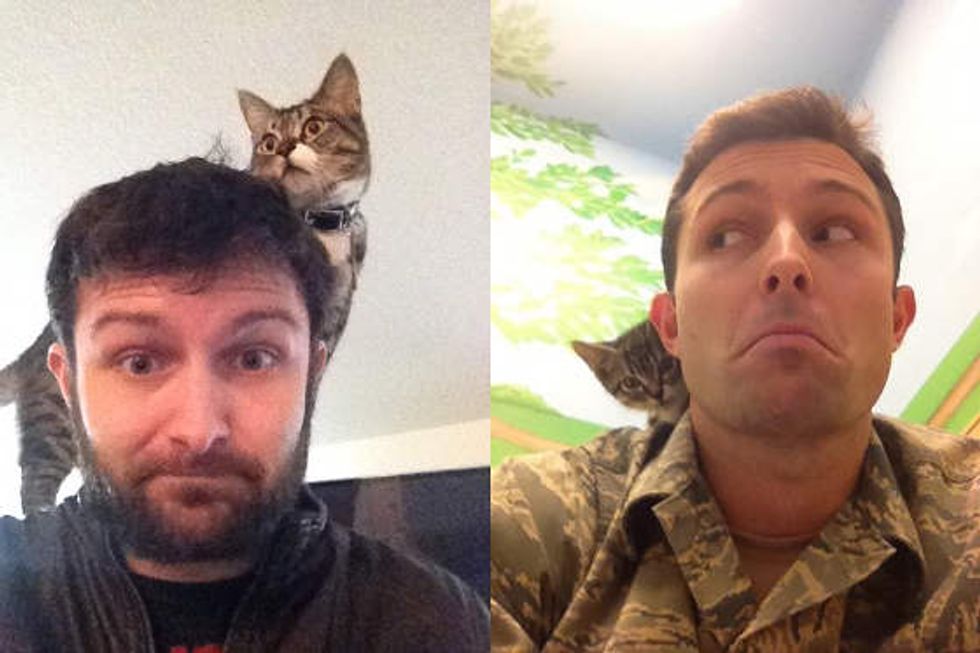 A military guy found two brother kitties, Loki and Thor, at the humane society. He was looking for a cat, but left the shelter with two. "One is a shoulder/head cat," Matt said via reddit.