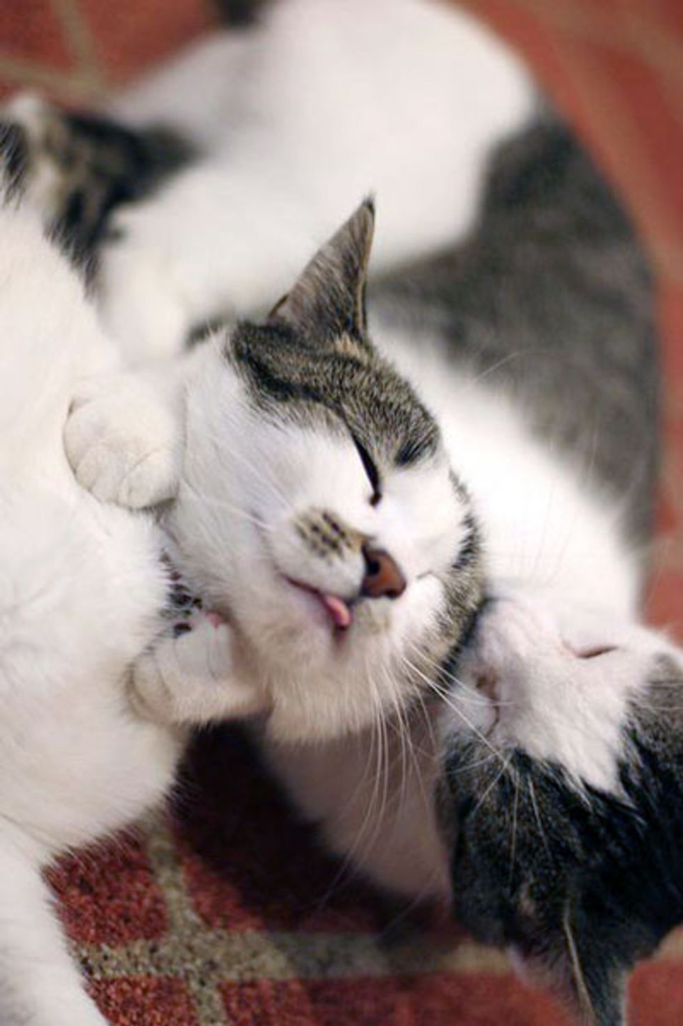 Vidalia won my heart instantly, but it took one whole day for her to adjust to my presence. . . merely one day. Amazing girl. I already had six cats in the house, and I was nervouse about introducing her to my husband. Thankfully, Vidalia worked her charm. When my husband reluctantly agreed to meet her, he went into the room and laid down on the ground. This young beauty promptly strutted over to him (with as much strut as her bulging belly allowed), rubbed against his chest, plopped down, leaned against him, and looked up into his face purring madly. . . how could he resist?