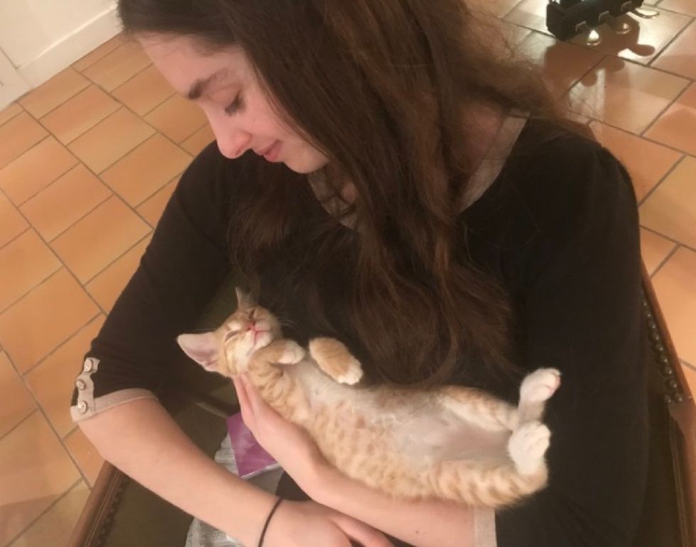 The little orange tabby was named Petit Rose, which means little pink in French. He was around 1-2 months old, an instant cuddle-bug and very curious from the start.