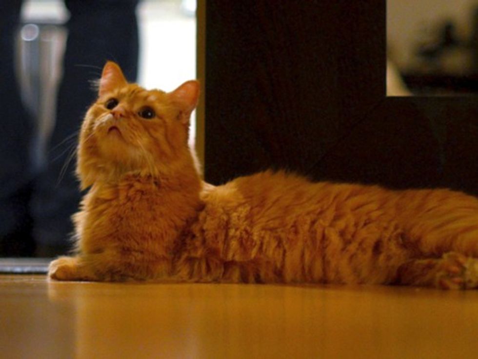 His name is Wallaby who was rescued in Brooklyn, New York, when he was 1 year old, a 5-lb dwarf kitten whose purrs melt hearts.