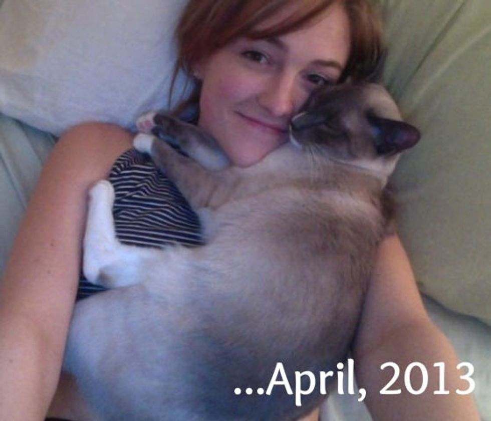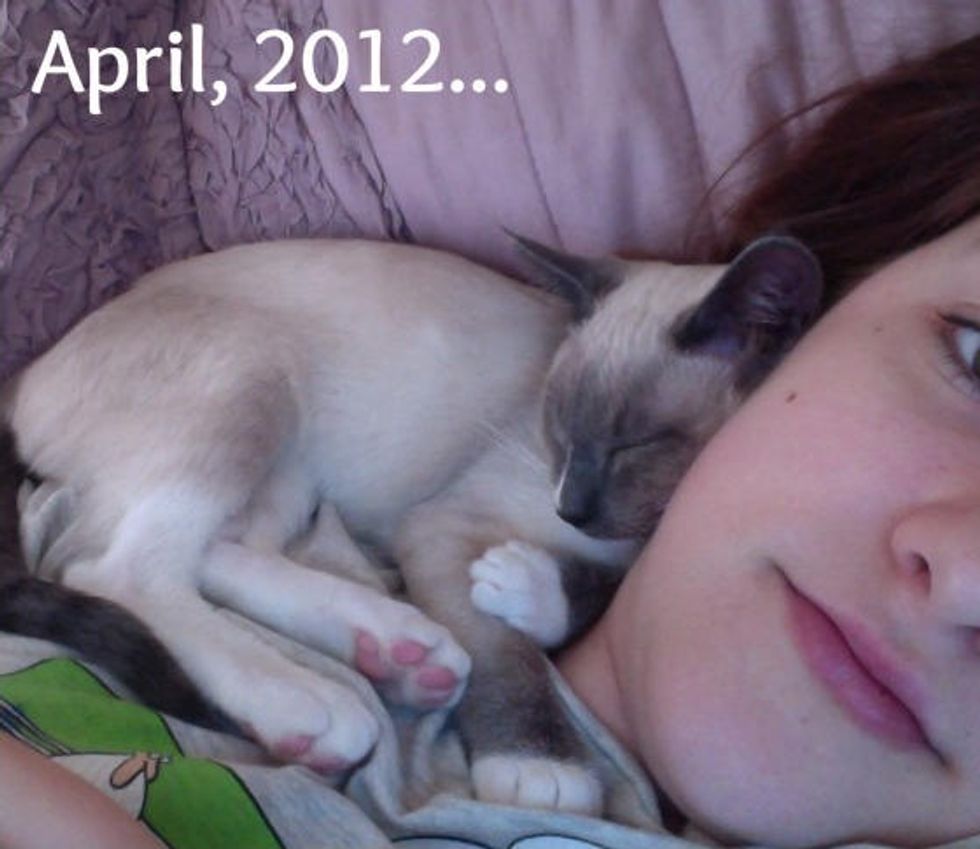 Her name is Piper, a Snowshoe. When she was a tiny kitten, she loved snuggling up to her human for a nap. A year later, she is much bigger, but still snuggles with her human for cuddles. They share an incredible bond.