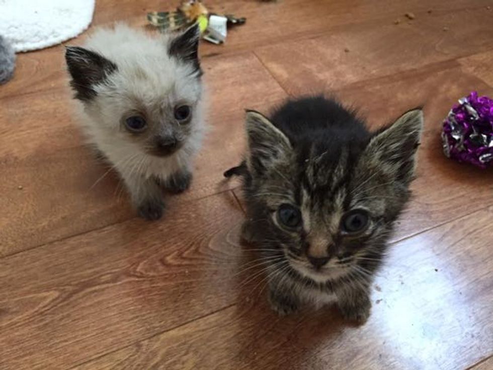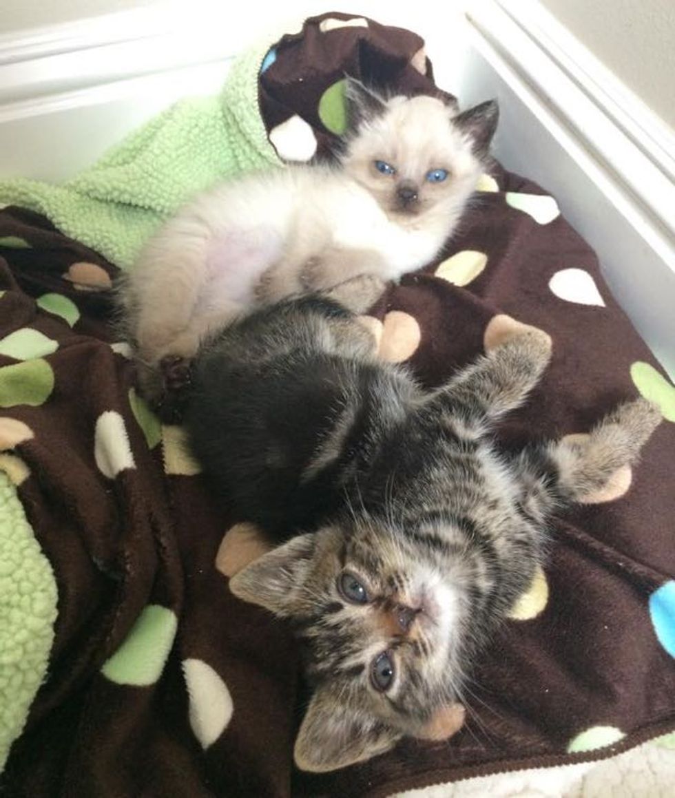 This is what a second chance can do. Meet Benson and Kansas! They were very tiny and hungry when taken into their foster home. With a lot of love, plenty of food, and a comfortable home, the two wee kittens have really come around!