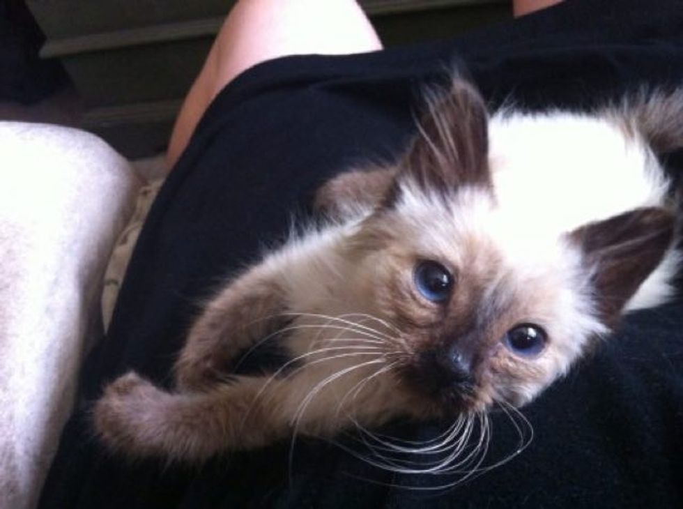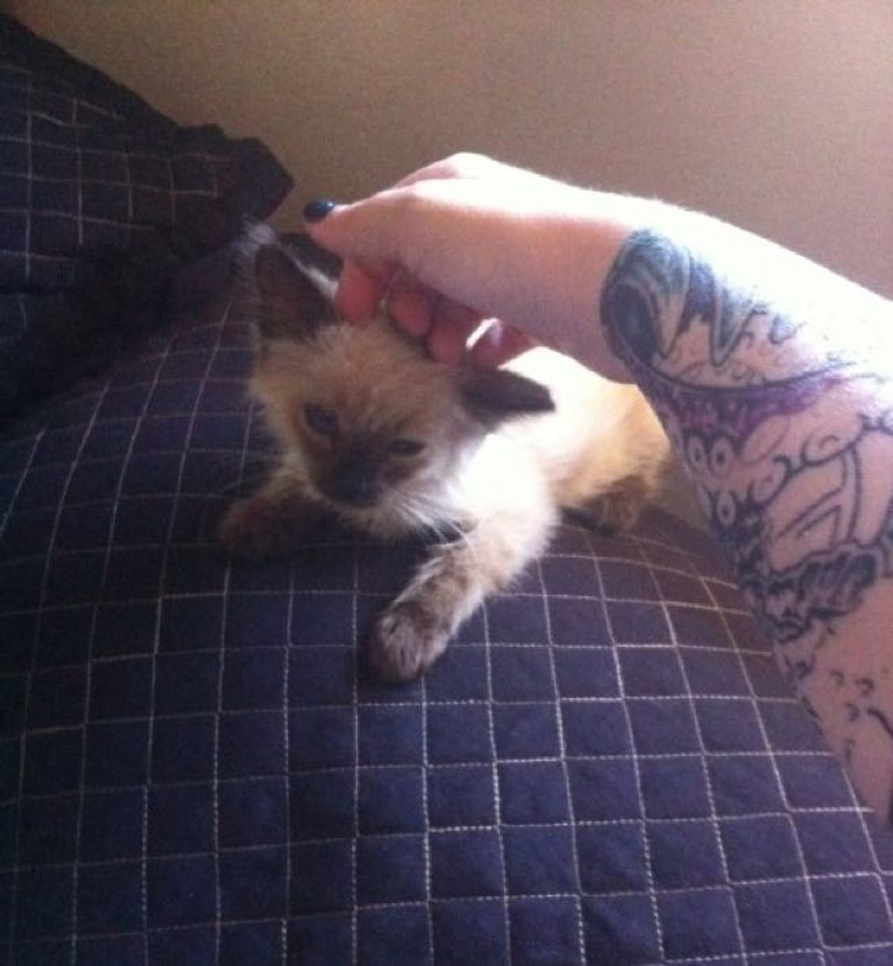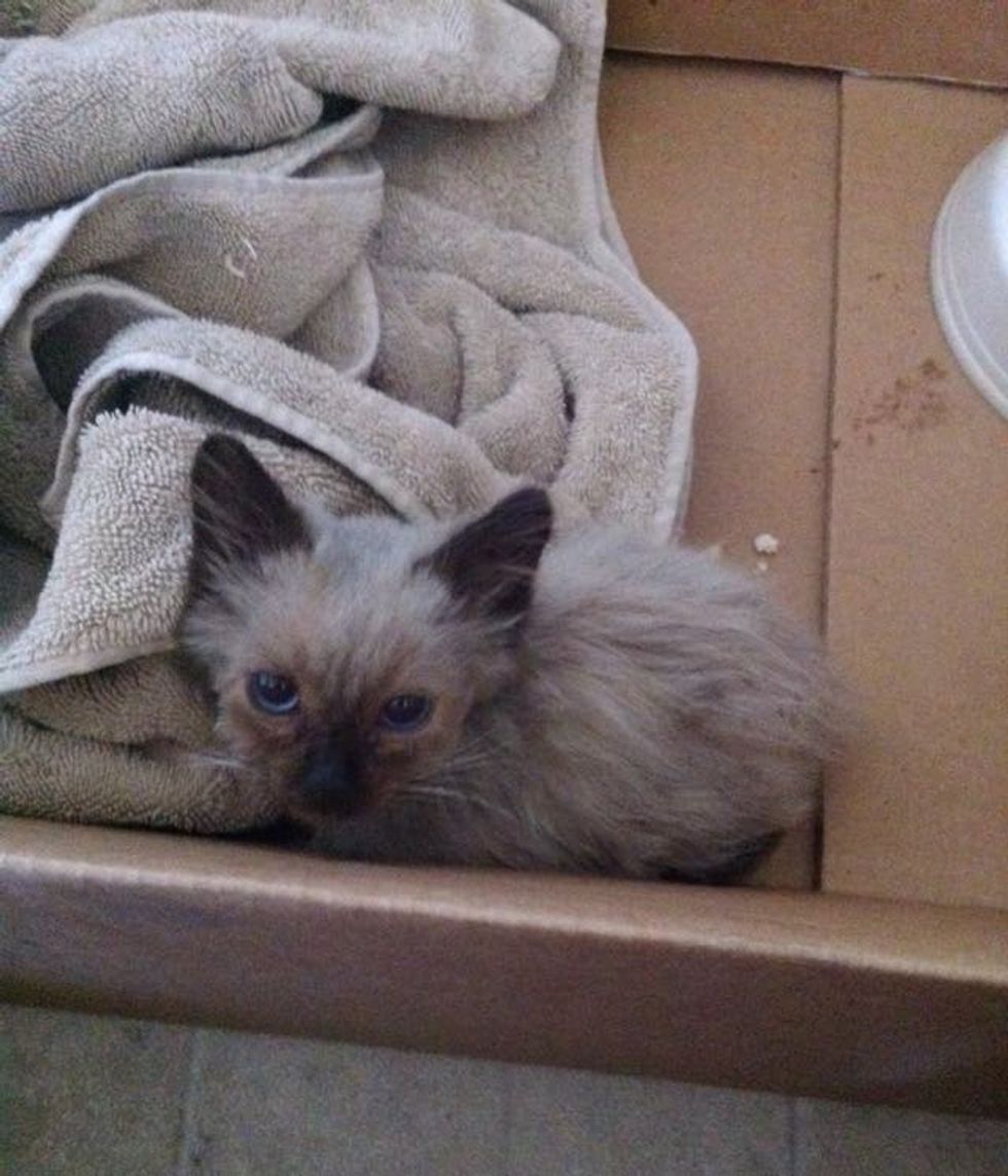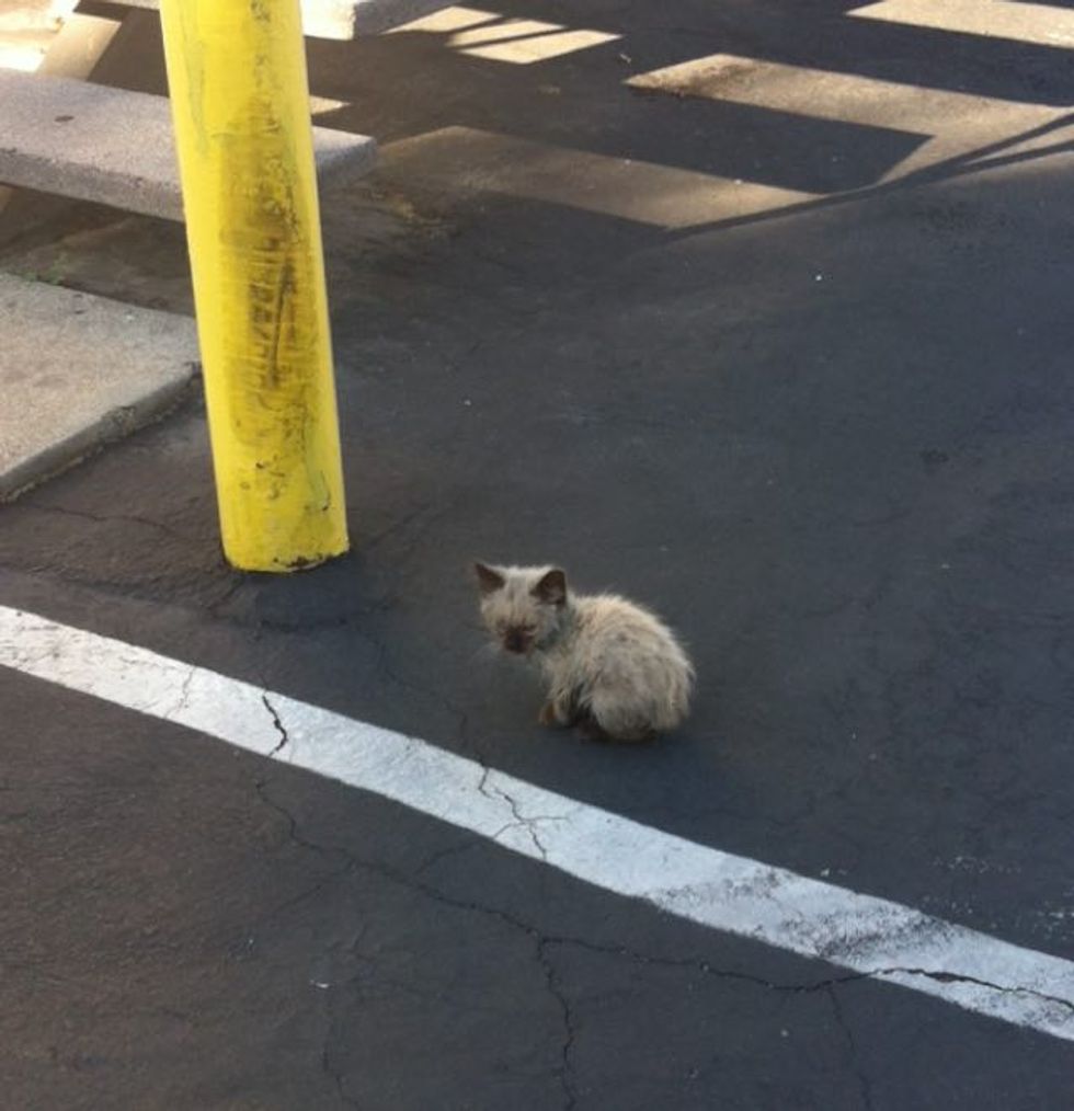 This is the difference love can make in just one day. A tiny dirty stray kitten was roaming around at an apartment building on June 20.