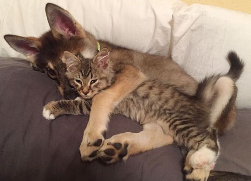 "(I) took the puppy to the shelter and showed her four kittens. These two instantly hit it off. Easy decision on my part," reddit user jumperposse wrote.