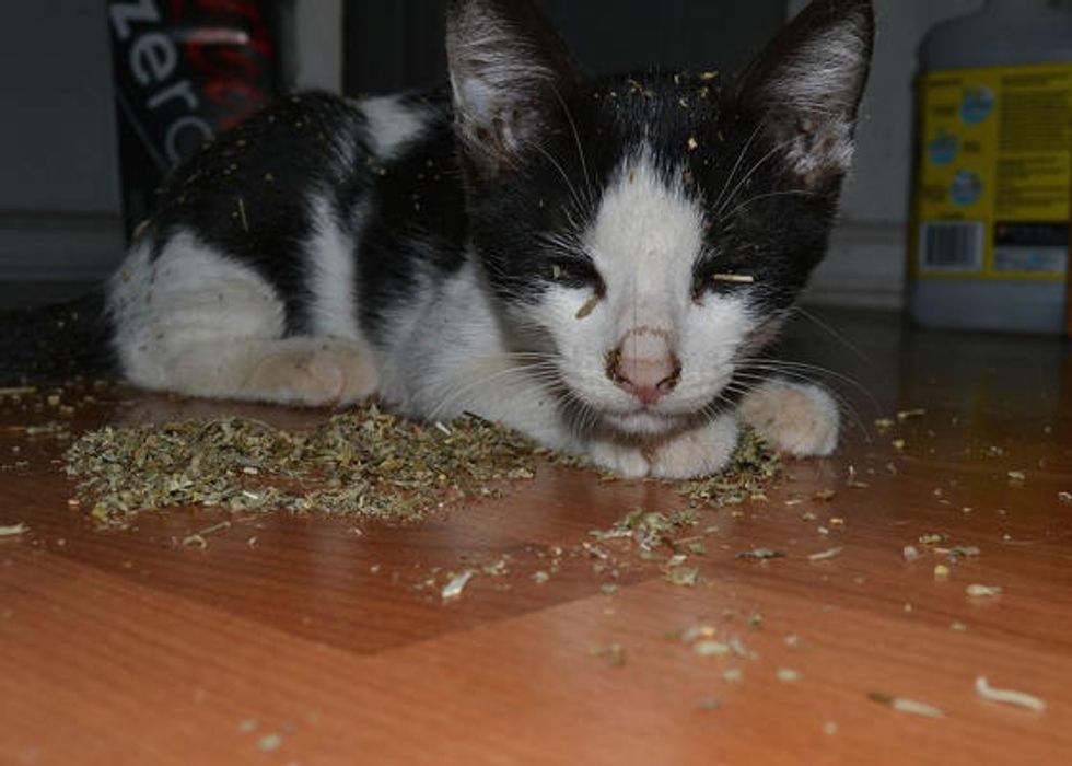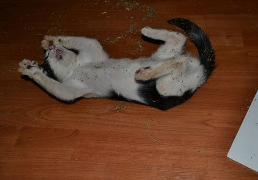 Wesley the tuxedo kitty found a catnip bag while his humans were out. He ripped it open, and this is what they returned to...