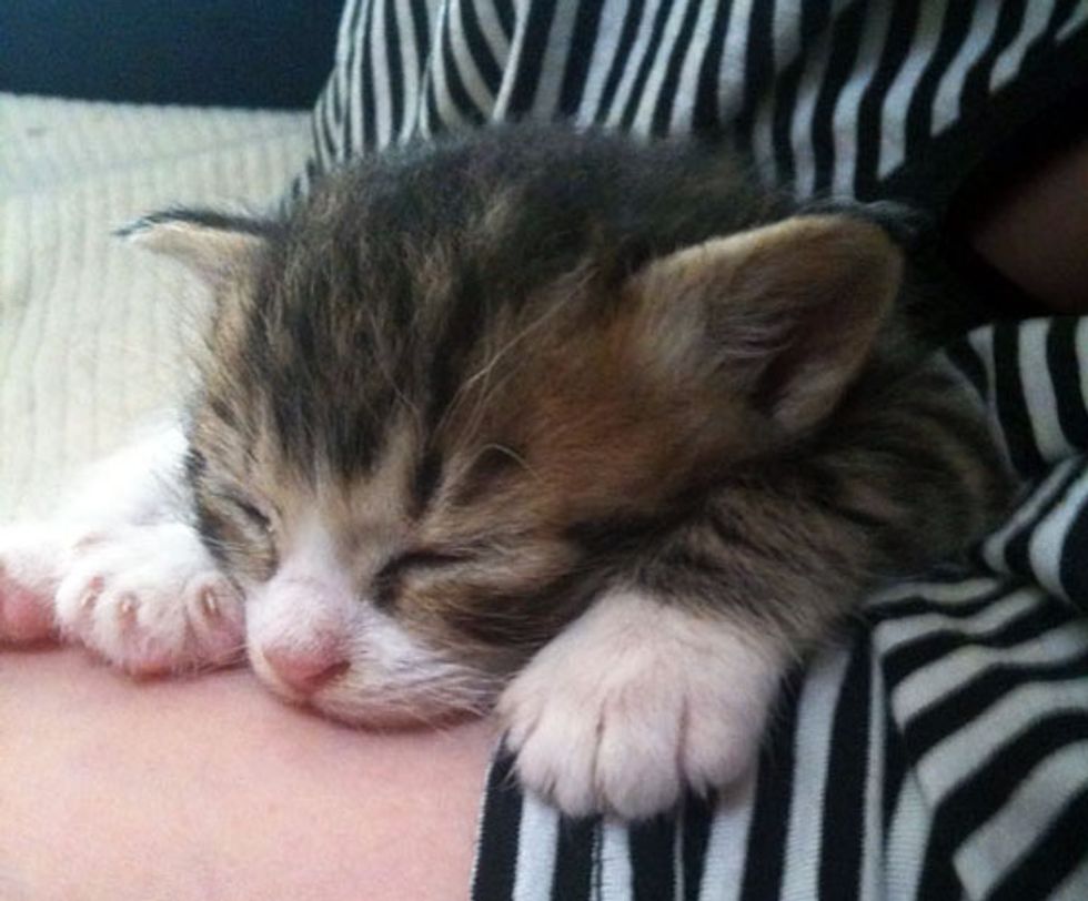 You never know when the sleepy bug bites. Little kittens sometimes fall asleep in such unpredictable ways. It can be anytime and anywhere. There are a couple signs when the sleepy bug does bite: the kitty appears to be yawning progressively and often times falls asleep in the middle of something and freezes in a pose.