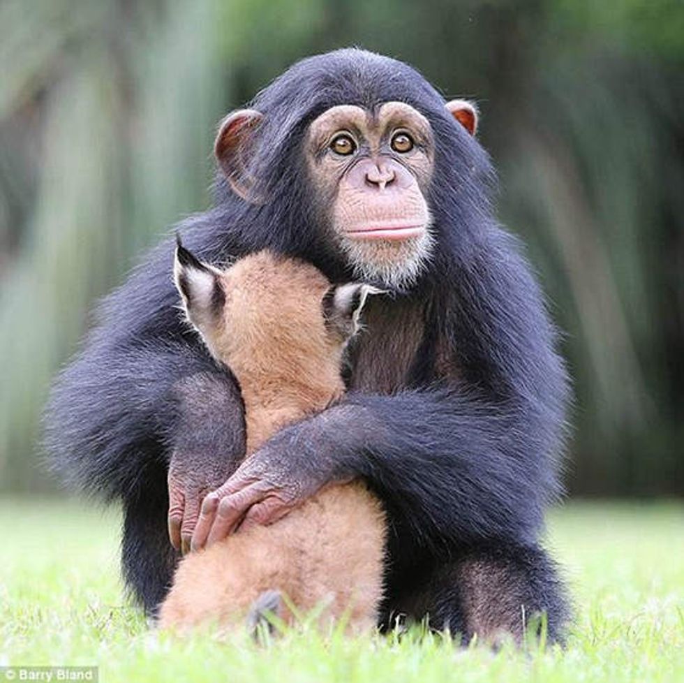 Satru loves cozying up to his chimpanzee pal in the wildlife park.