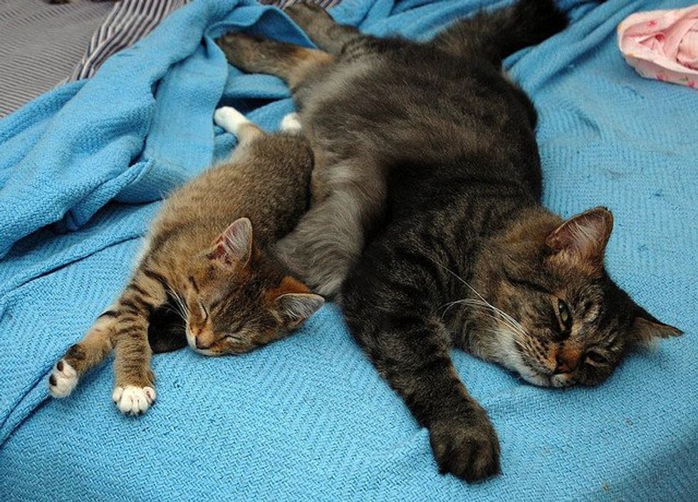 Wink loved to follow Neville like a little magnet. Wherever he went, she tagged along. They loved to spend time together, washing each other and napping together. "She was grooming him, laying on his head and licking his ears. It was pretty cute."