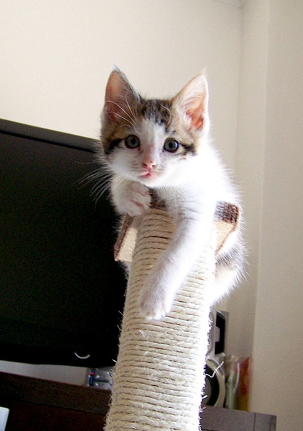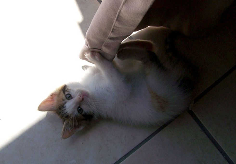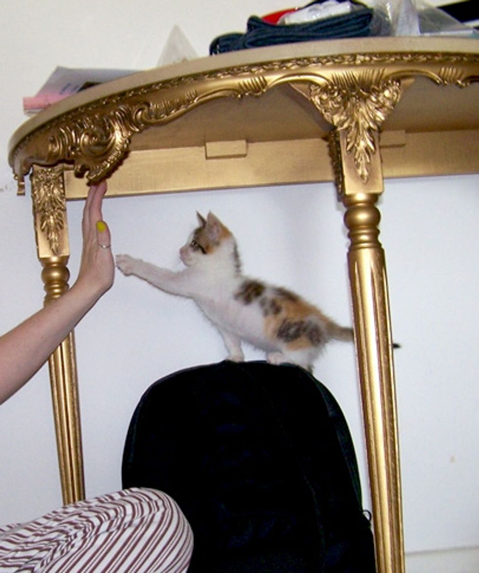 I was on my way to Sweden for a business trip so I arranged for this little kitten to be given to my wife once I had boarded the flight. I knew this would distract her from my being away and give her time to focus 100% on getting this little darling healthy. The vet gave her less than a 50% survival chance due to malnutrition, but as you can see she's defied all odds and is now healthy, happy and rapidly putting on weight.