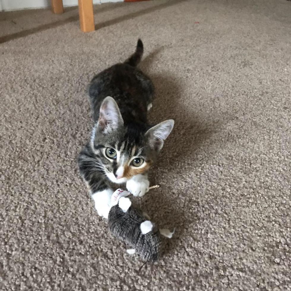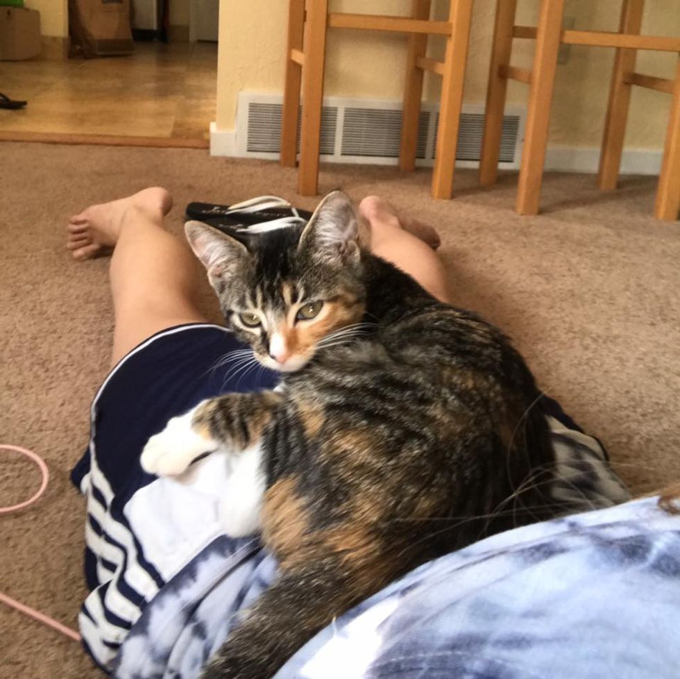It's been five days since she moved into her new home. The calico girl is already running the house like she owns it. Despite her small stature, Twerk has claimed to be the boss of the household.