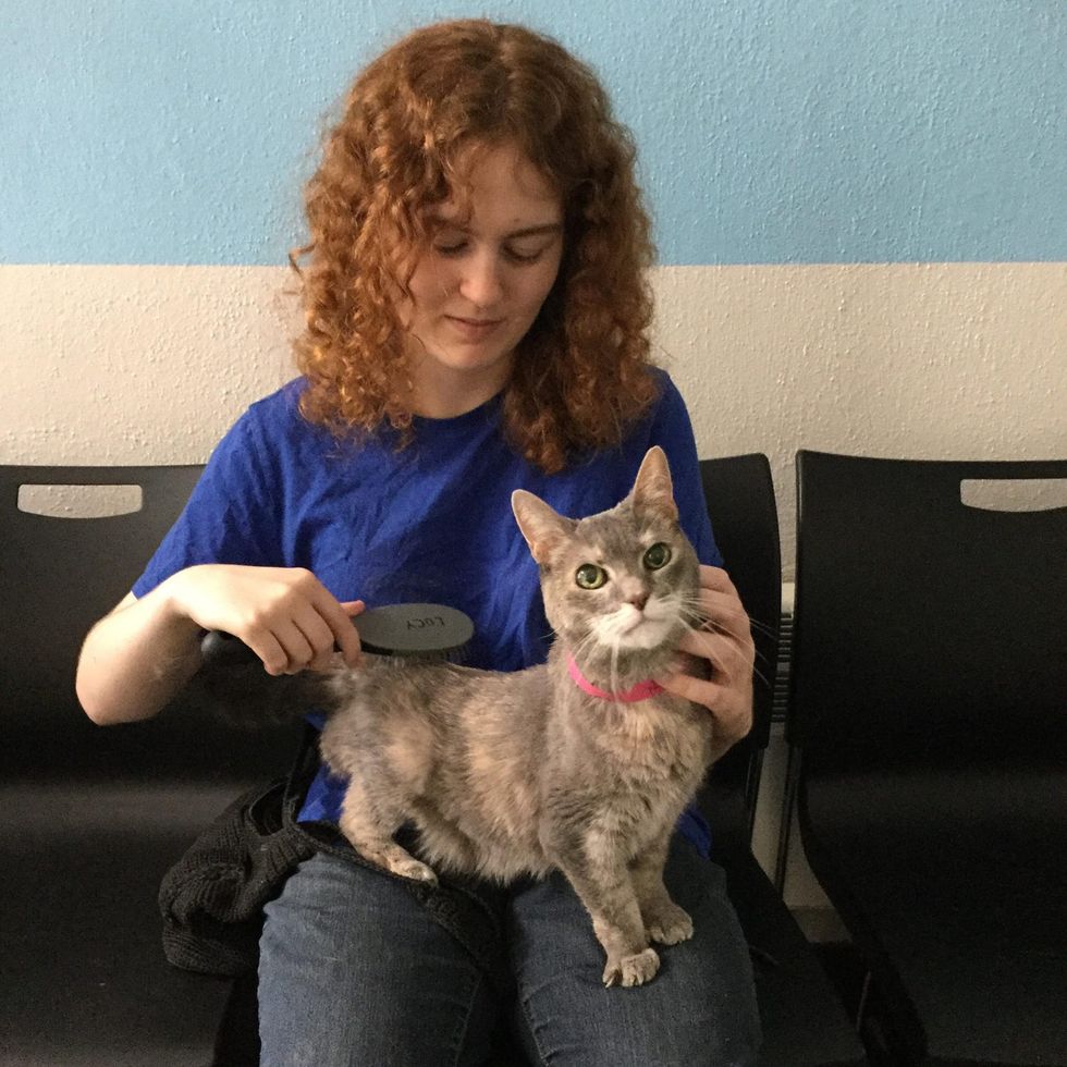 She couldn't groom herself as well as she used to and was feeling a bit lonely at the shelter, so one of their wonderful volunteers spent the afternoon sitting with her, brushing her beautiful coat and giving her all the pets she wanted.