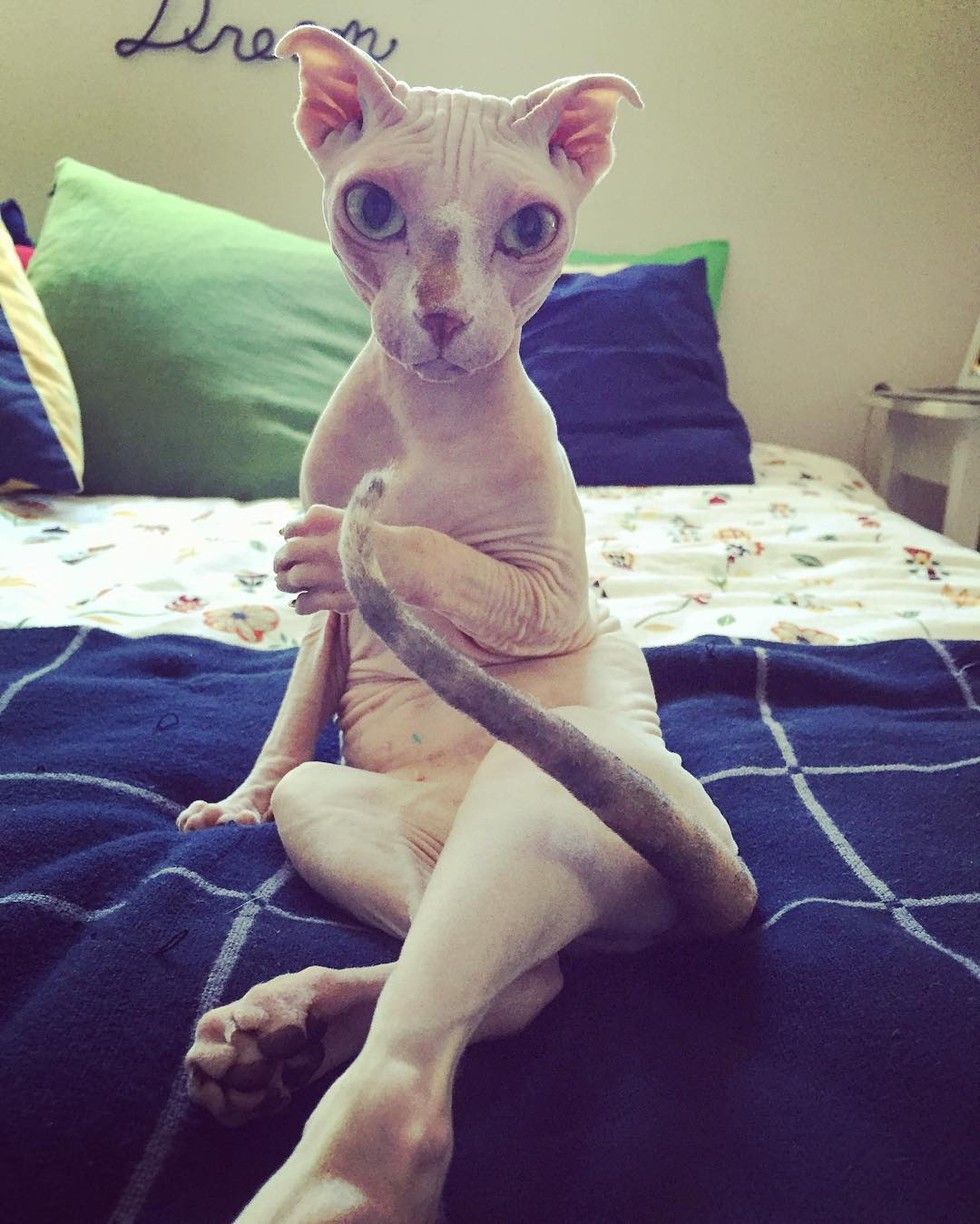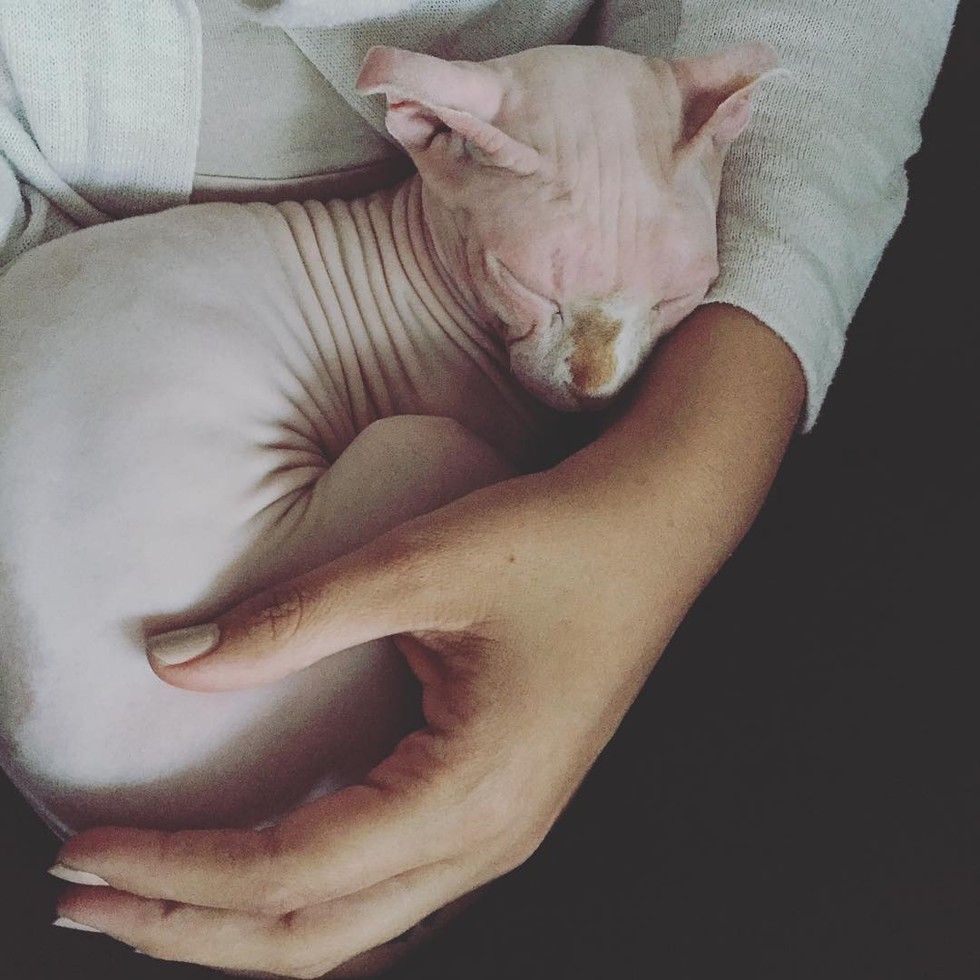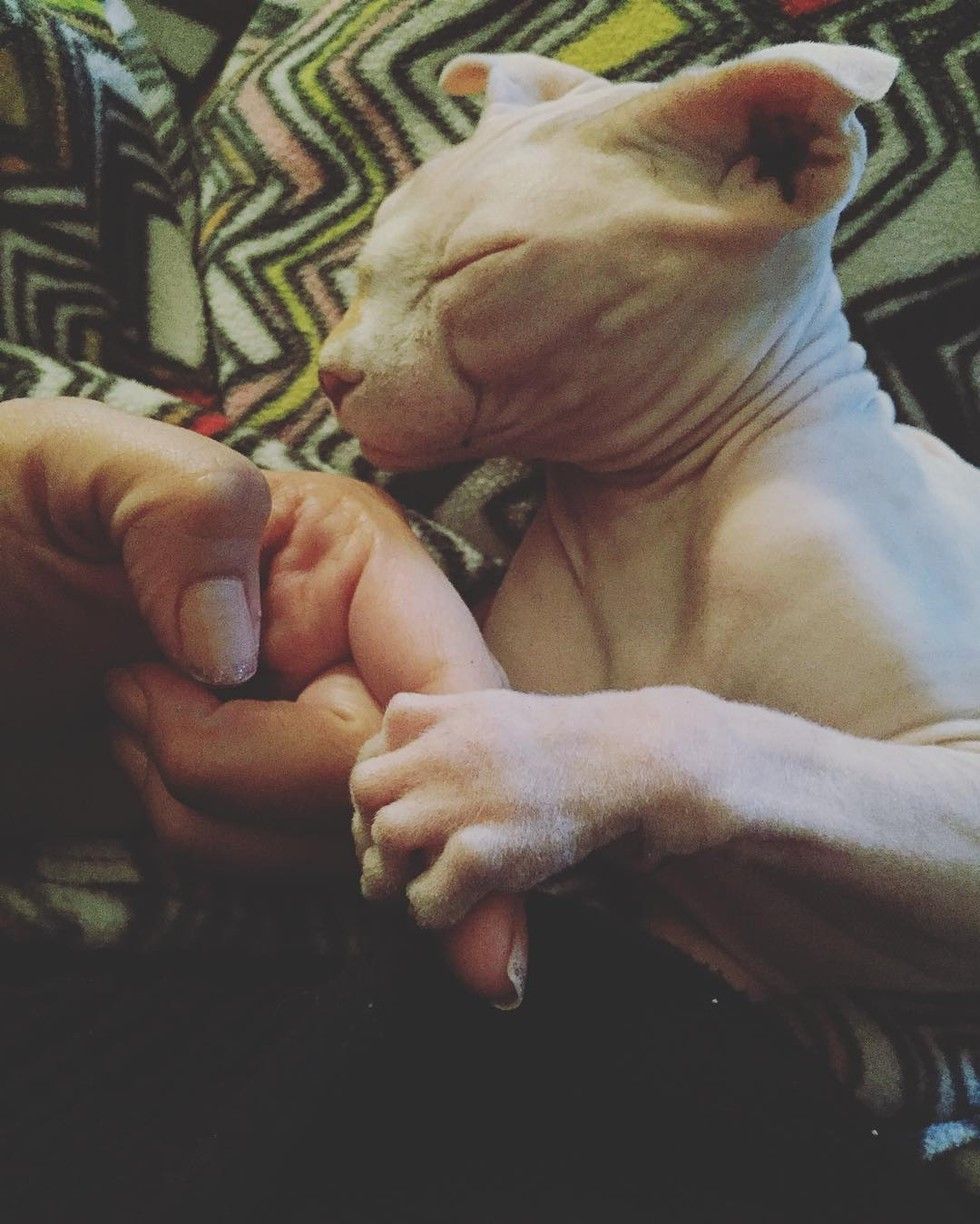 Rae is a cat person and has always loved hairless cats as far back as she could remember. When her boyfriend left, he took both cats with him.