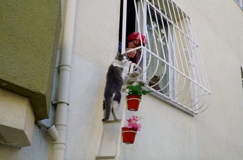 So far, around 10 stray cats have made their way into her home through the "cat ladder", and the number is increasing.