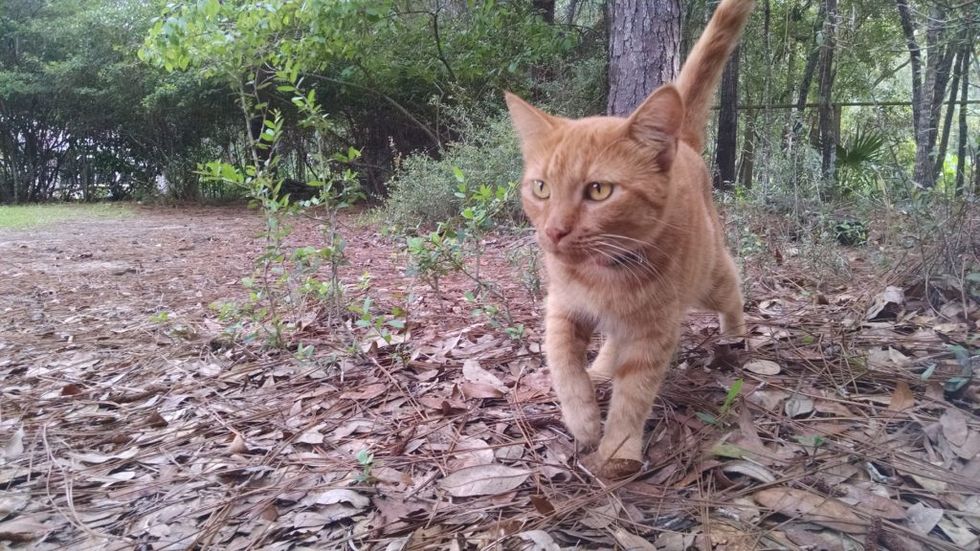 Turns out the ginger cat once had a home, but that day she was left on the side of the road all alone in the Graham Creek Nature Preserve area in Foley, AL. The kitty started walking around the neighborhood looking for help, and that's when she found the kind woman.