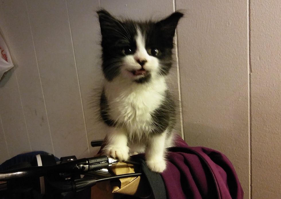 Kayla was on her way to get a bike tube for a flat tire. When she hopped on the bus, she noticed a friendly lady with a stroller with her kids in tow, then she heard meowing.