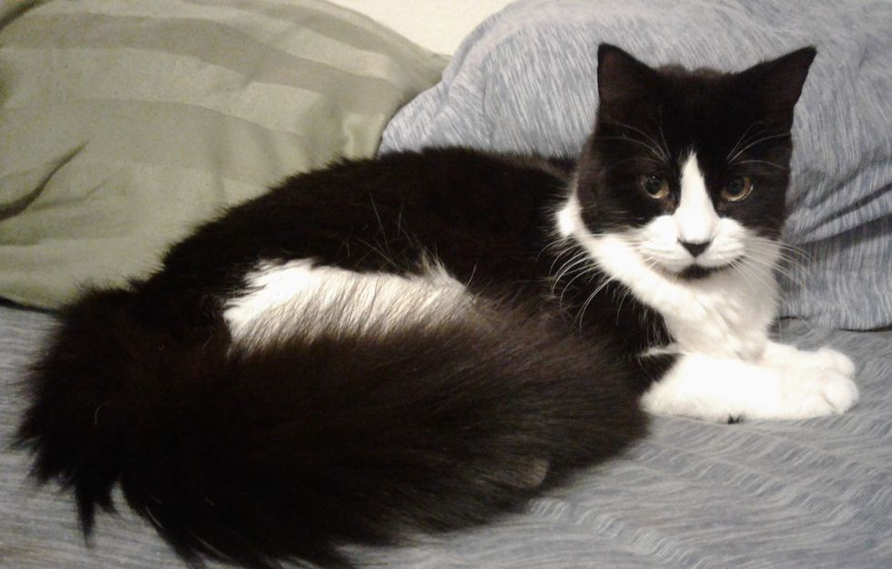 A year later, Ivy has grown into a gorgeous tuxedo cat.