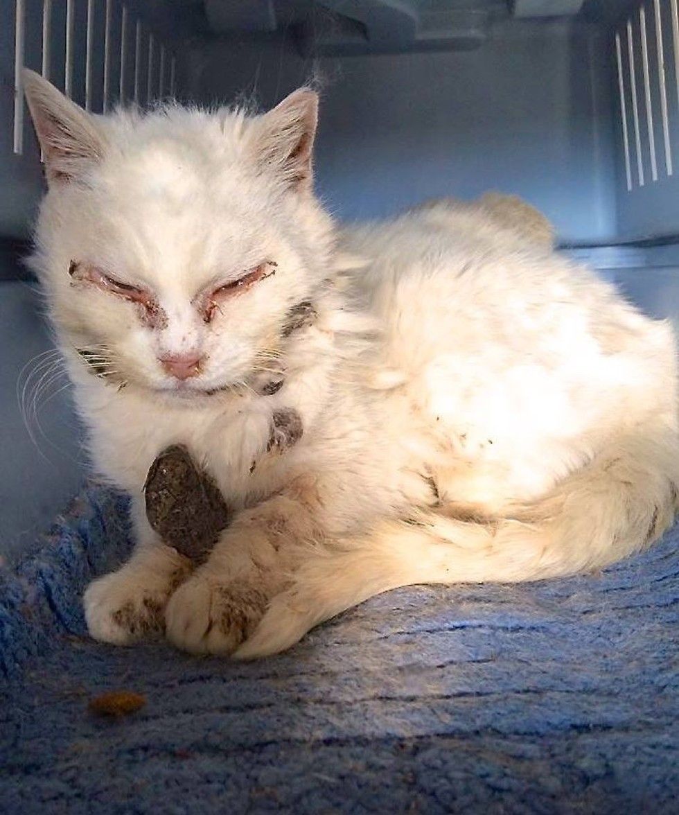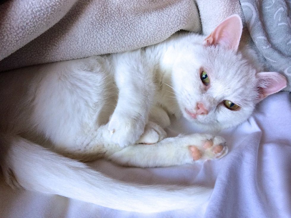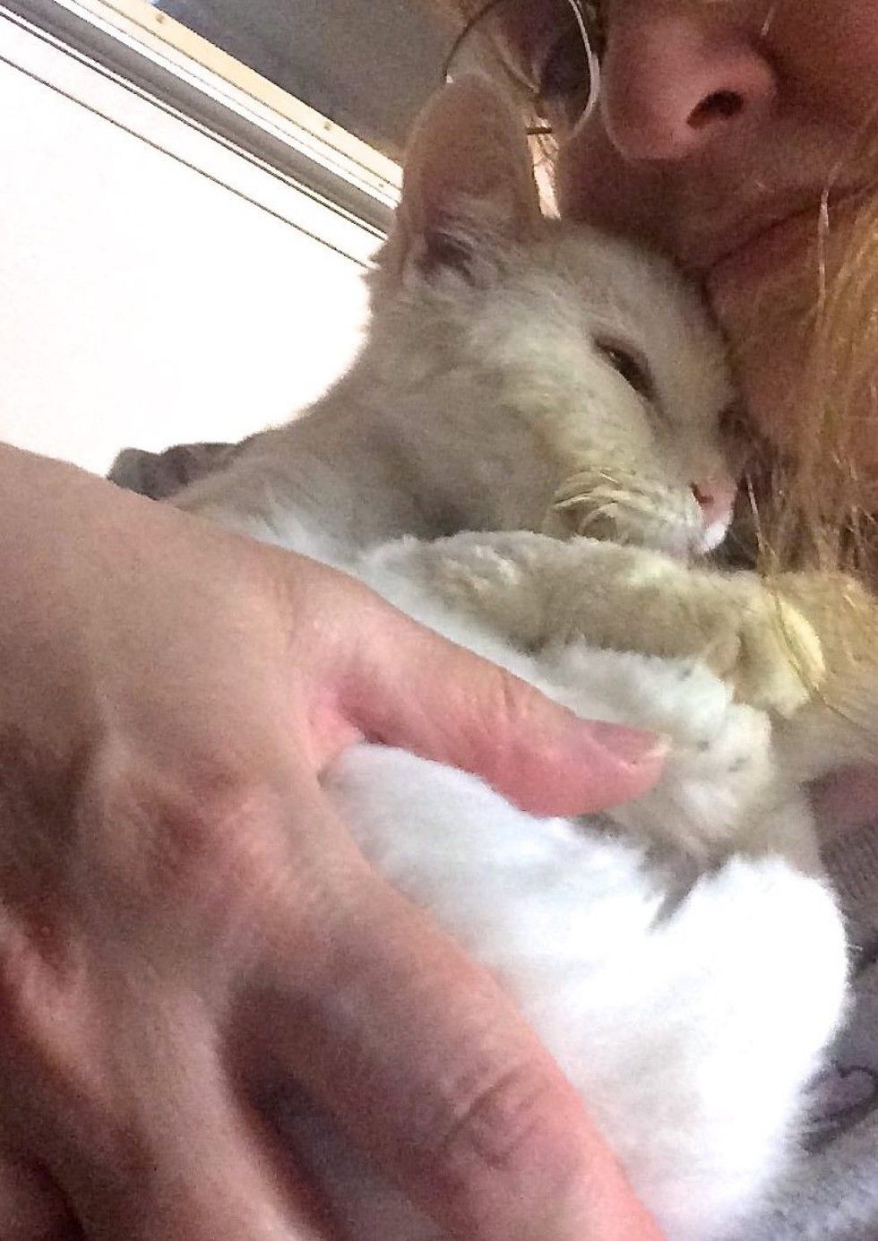 Snow White the cat spent all her life as a feral until she was saved by a kind woman and she felt loved for the first time.