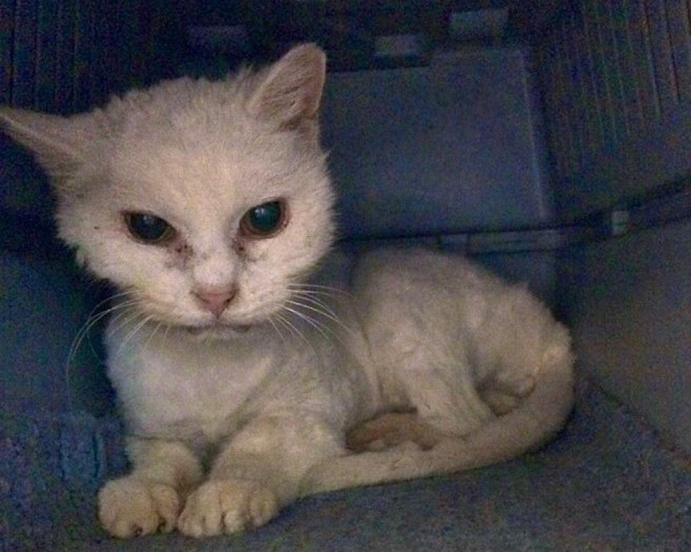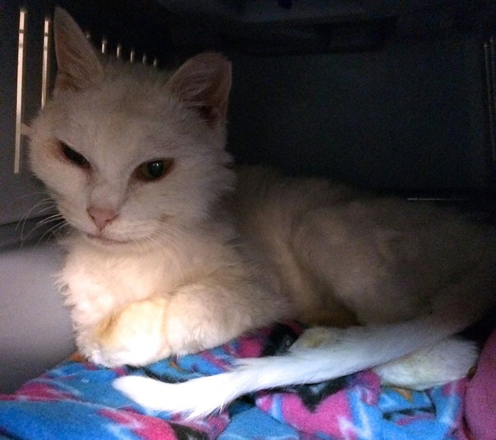 "We first saw Snow White 4 years ago (Spring 2012). We trapped her, took her to be spayed but found that she had already been spayed, so we ear tipped her and released her with food and shelter. She looked a lot better then. We never saw her again until Halloween '15 when my daughter spotted her in the neighborhood. She looked pitiful - in the bedraggled state," Rhonda Andersen told Love Meow.