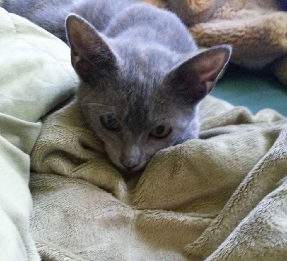 She looked "rodent-like" with ringworm and other ailments. Allie nursed her back to health and the kitty's personality began to shine through.