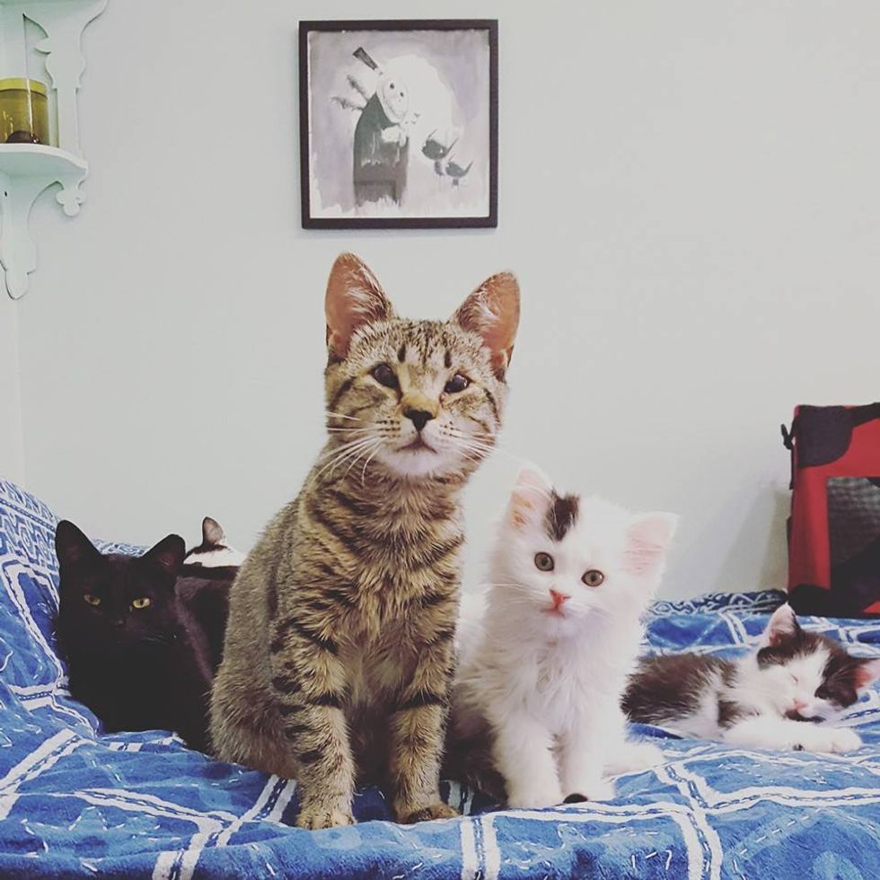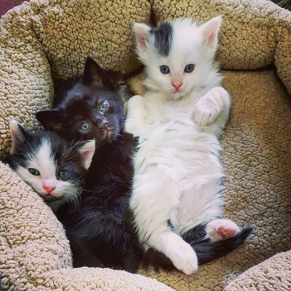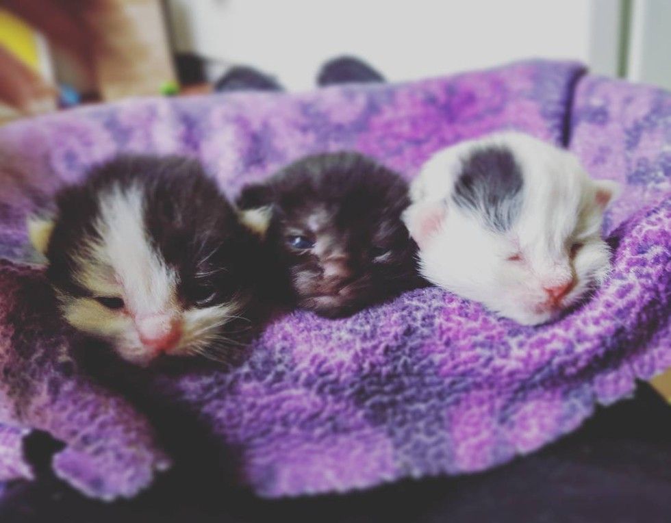 A feral mother cat gave birth to three kittens. Sarah kept them safe in her basement and provided food and comfort for the fur family. "I have to thank Tiddlywink's momma for being a champ. Her mom was found with her babes in an attic in Trenton New Jersey," Sarah Donner told Love Meow.
