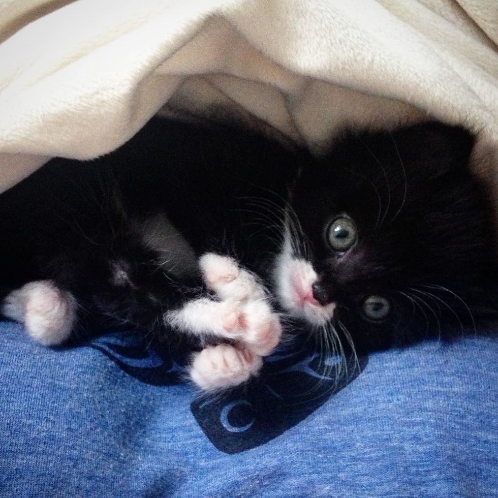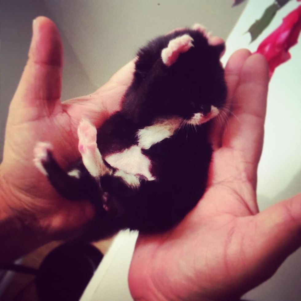 "When I found him I couldn't tell if he was alive. I started to feel panicked once I realized that he wasn't meowing any more. So I brought him straight to the vet. They said he was less than a week old and had been abandoned by his mother."