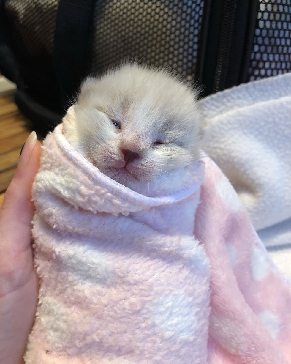 The kind woman contacted a few local rescuers, and Anais Brochard, a foster carer of Kitten Rescue (in Los Angeles), offered to take the kitten. Another kind person arranged a ride so the kitty could be transported to her foster home that night.