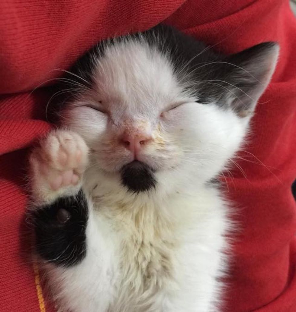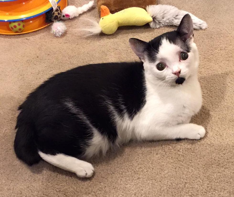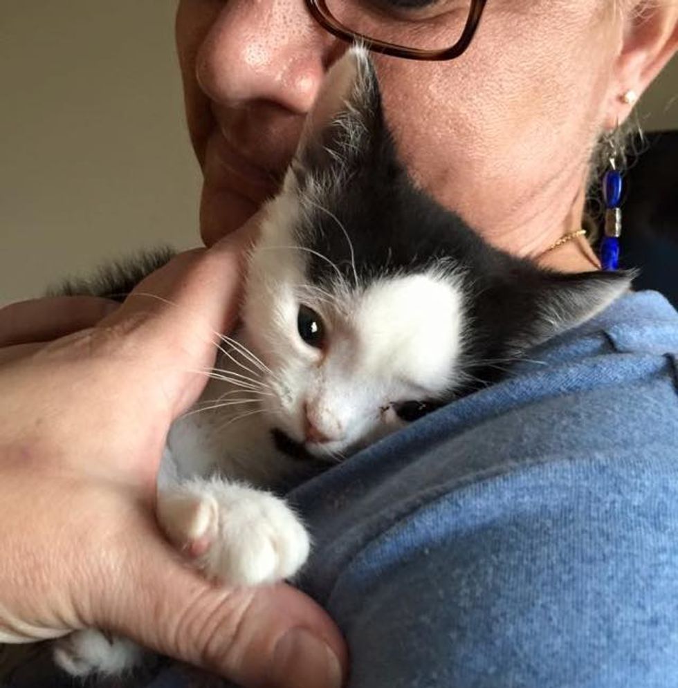 Zeke the tuxedo kitten was just 13 weeks old when Lisa Jones of Super Heros Animal Hydrocephalus Society rescued him from euthanasia from a local rescue.