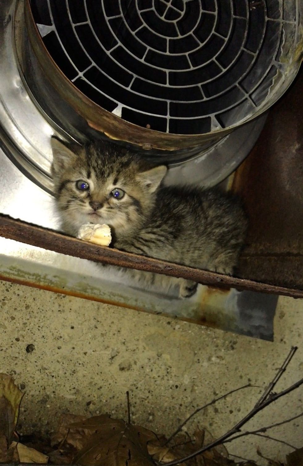 Jenna was working at a restaurant when her manager told her about a kitten meowing outside. She went out to investigate the kitty's whereabouts.