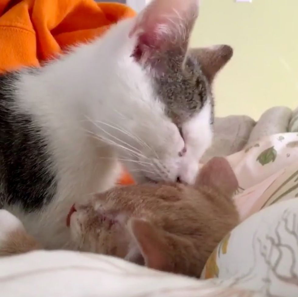 After Boop came back from the vet, Bop offered his brother some much-needed comfort and cuddles.