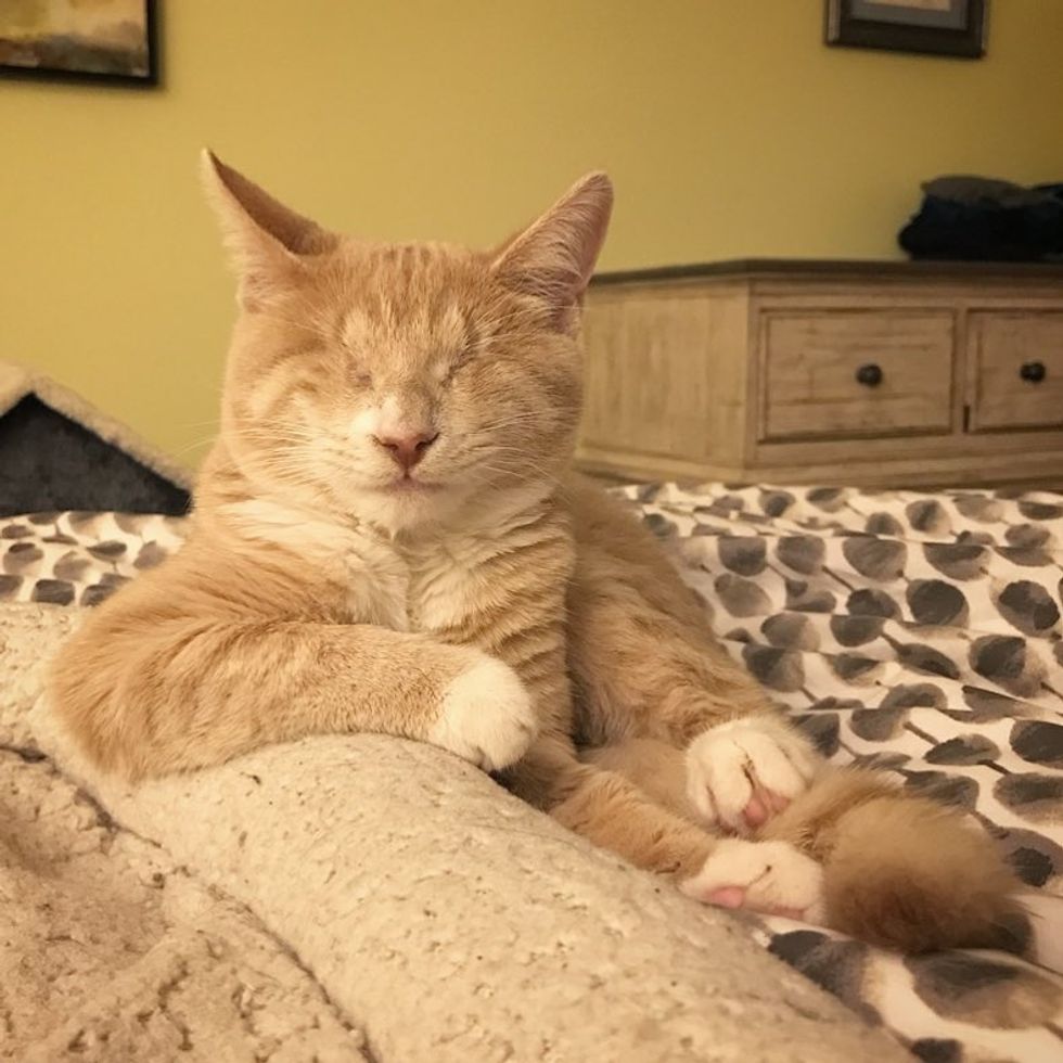 Jen found Bop just a few days after his eyes had been removed due to a condition called microphthalmia, where the eyes are very small and do not form correctly. "Bop's eyes could not be saved. It is likely that he has never been able to see," Jen told Love Meow.