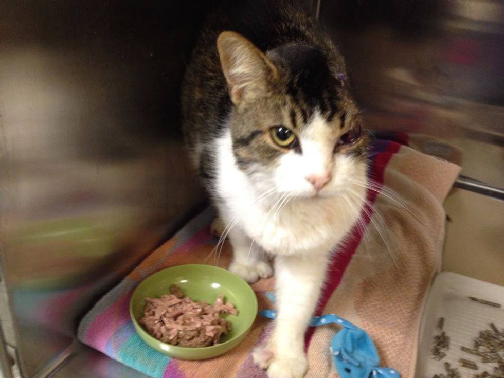 Part of his face (including his left ear) was missing and his left eye had lost its vision. "Van Gogh had most likely crawled up into a car engine to escape the bitter cold, only to end up with a good chunk of his face missing," Sarah Klawiter of Crash's Landing told Love Meow.