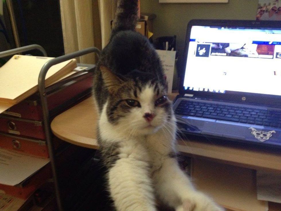 "He always loves snuggling up to another cat in a warm bed, 'helping' volunteers with their tasks, and showing off his amazing personality to everyone who visits."