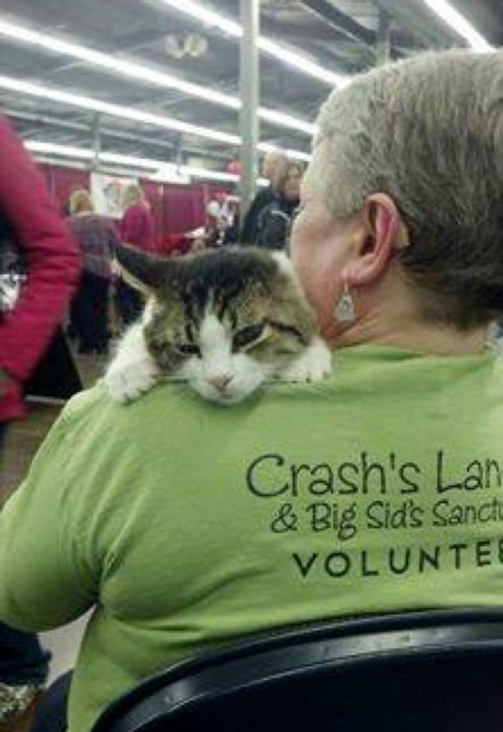 She brought the cat to Crash's Landing, a rescue group in Grand Rapids, Michigan to get him the help he desperately needed. From the moment he arrived at the shelter, this miraculous cat switched on his purr motor and wouldn't stop purring as his rescuers tended to his injuries.