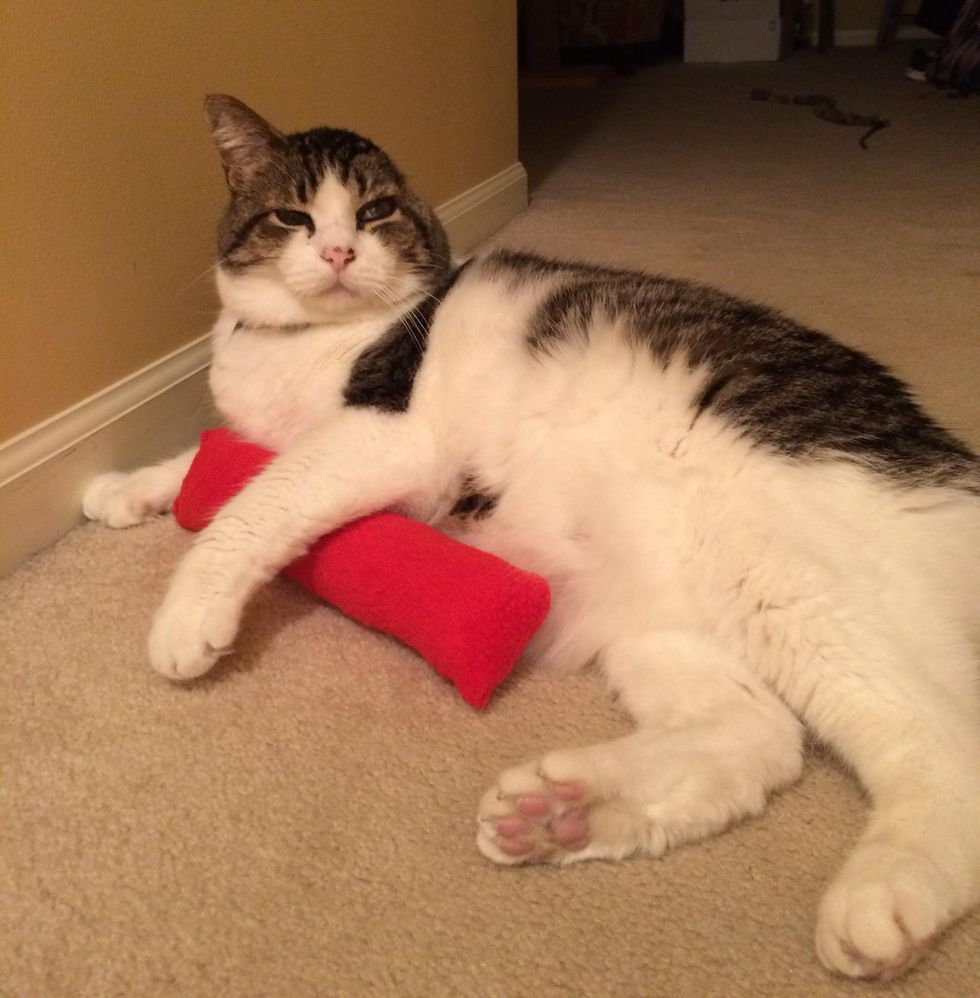 He's an affectionate lovebug, cuddler not only to his humans but other cats too.