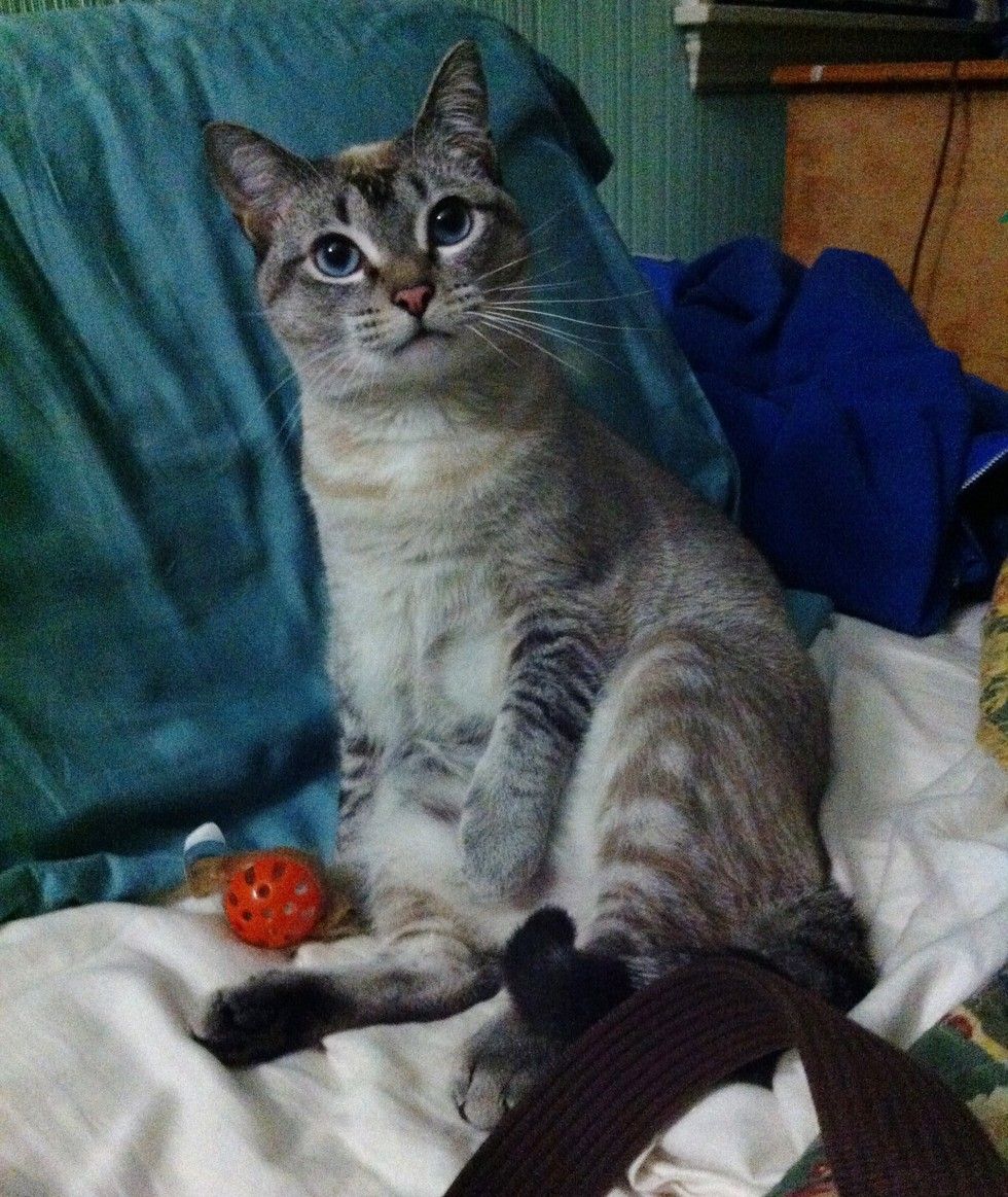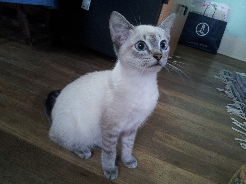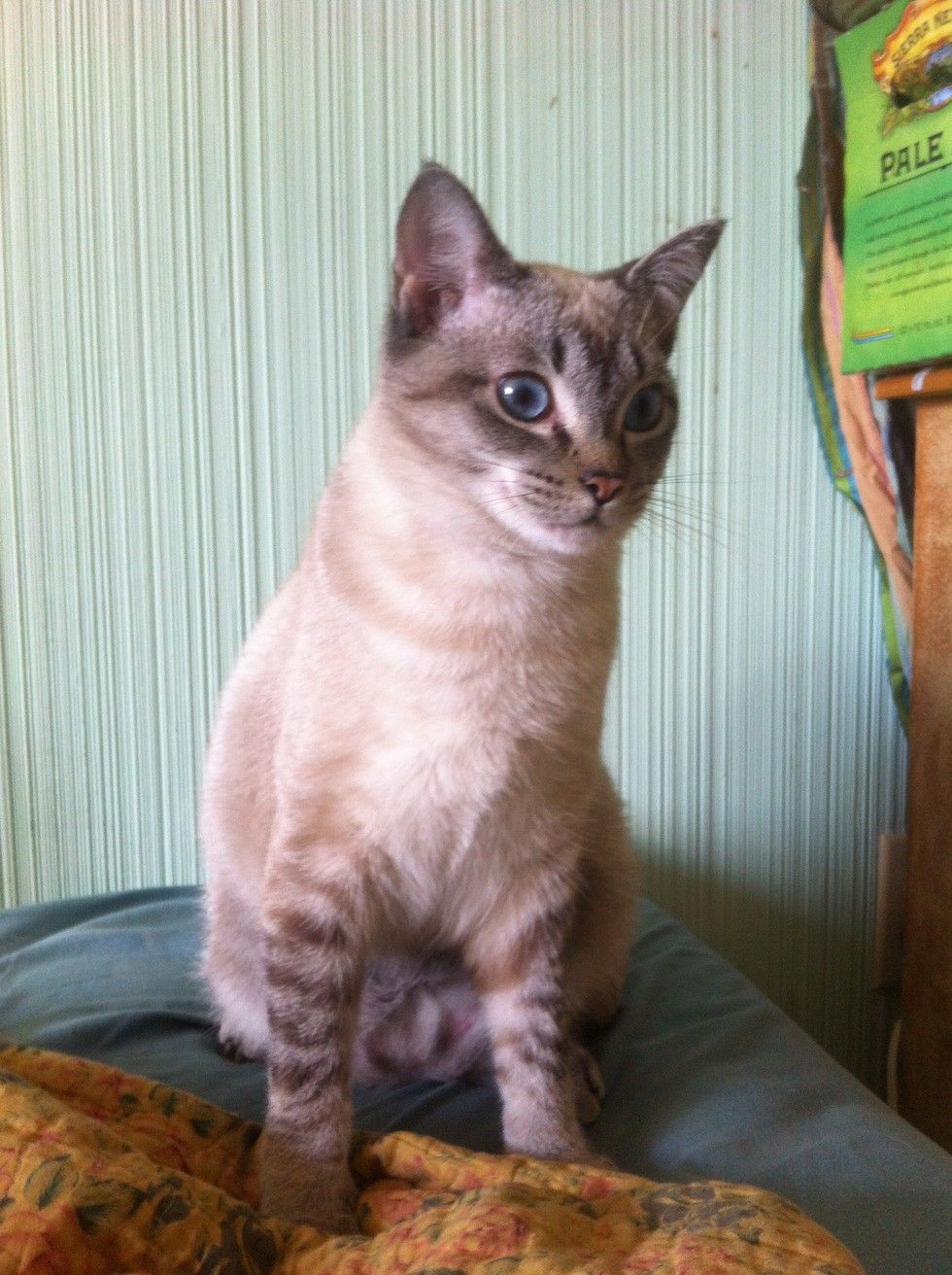 "Batman's coloring when she was a baby was what the vets called 'lynx point' but her coloring got SO MUCH darker and more detailed as she has grown."