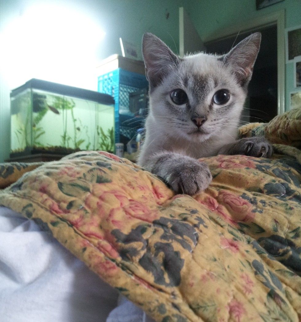 "She was one of two feral kittens from a neighborhood feral Siamese cat that were living in a woodpile in my neighbor's backyard," Ali (/u/alliwantisallthepie) told Love Meow.