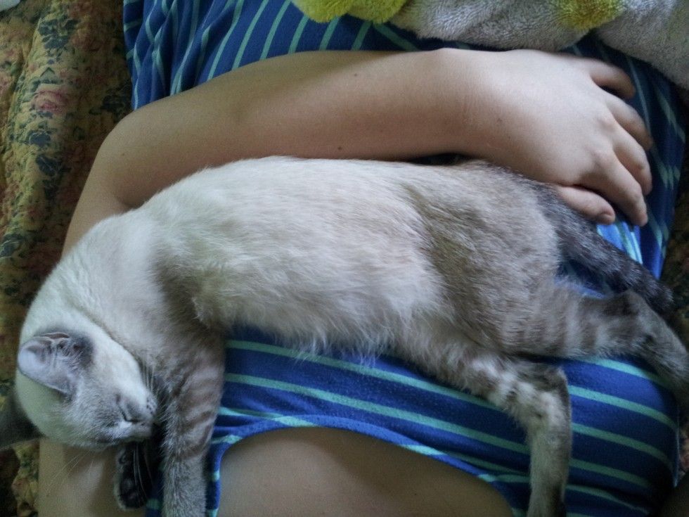 "I sat on the bathroom floor for quite some time, not knowing what to do, or if I made a horrible mistake. So then I snuck my hand under the towel and got one finger under her chin, and started scratching- and after a few seconds I could feel this tiny purring against my chest, and in that moment, I knew everything was going to be ok."